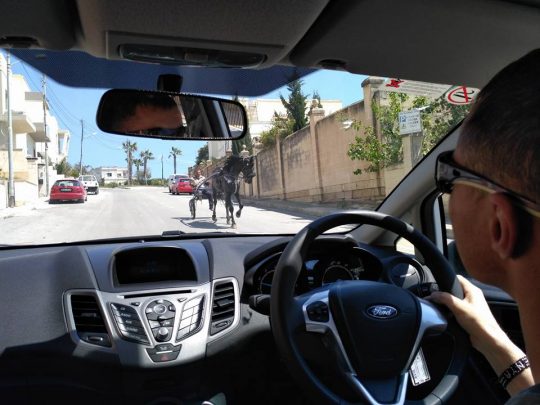 Ruch lewostronny nie ułatwia jazdy. Jacek świetnie sobie dawał radę. Lokalsi są wyrozumiali, przepuszczają i nie poganiają, gdy ktoś jedzie niepewnie przed nimi. Mijaliśmy też sporo konnych dwukółek. Niczym rzymskie rydwany. Południe Malty jest mniej zaludnione, nie ma tu dużych hoteli i zgiełku. No i jest jeszcze przed sezonem.