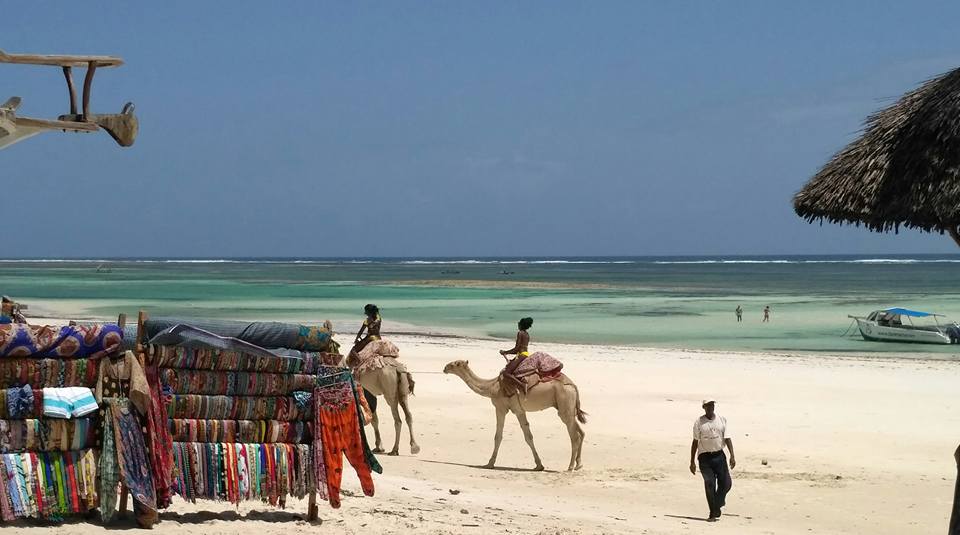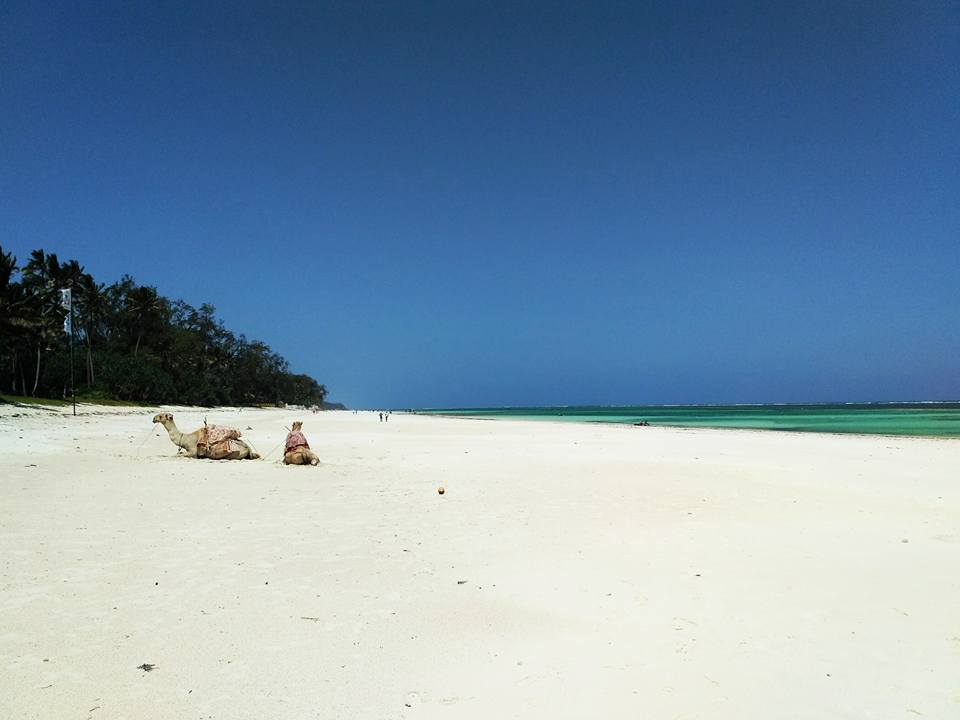 Diani Beach, niebiańskie plaże, ocean i wielblądy