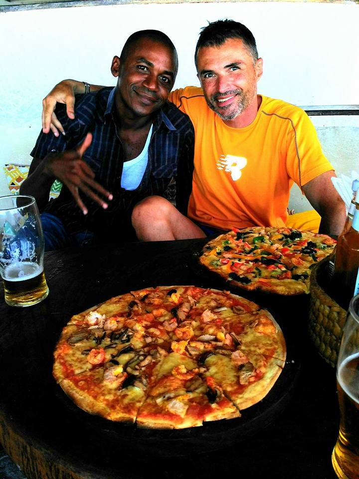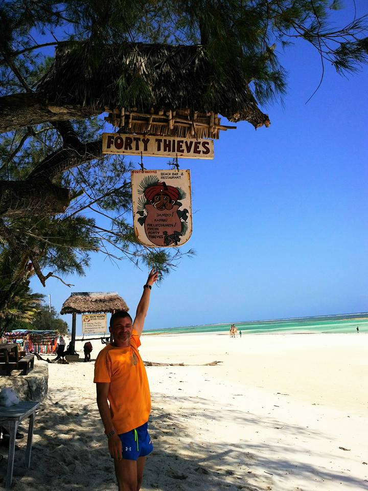 Amina poleciła nam „40 thieves bar” nawiązujący do słynnego Ali Baby i jego rozbojników. Znajduje się na samej plaży. Nie mogliśmy się nacieszyć tymi widokami. Ciągnąca się kilometrami, biała, piaszczysta, szeroka plaża. Pusta, z palmami kokosowymi. Woda we wszystkich kolorach błękitu, turkusu, zieleni. Można było iść z dobry kilometr w głąb morza, tak było płytko. Woda równie gorąca jak w Wasini i Lamu.