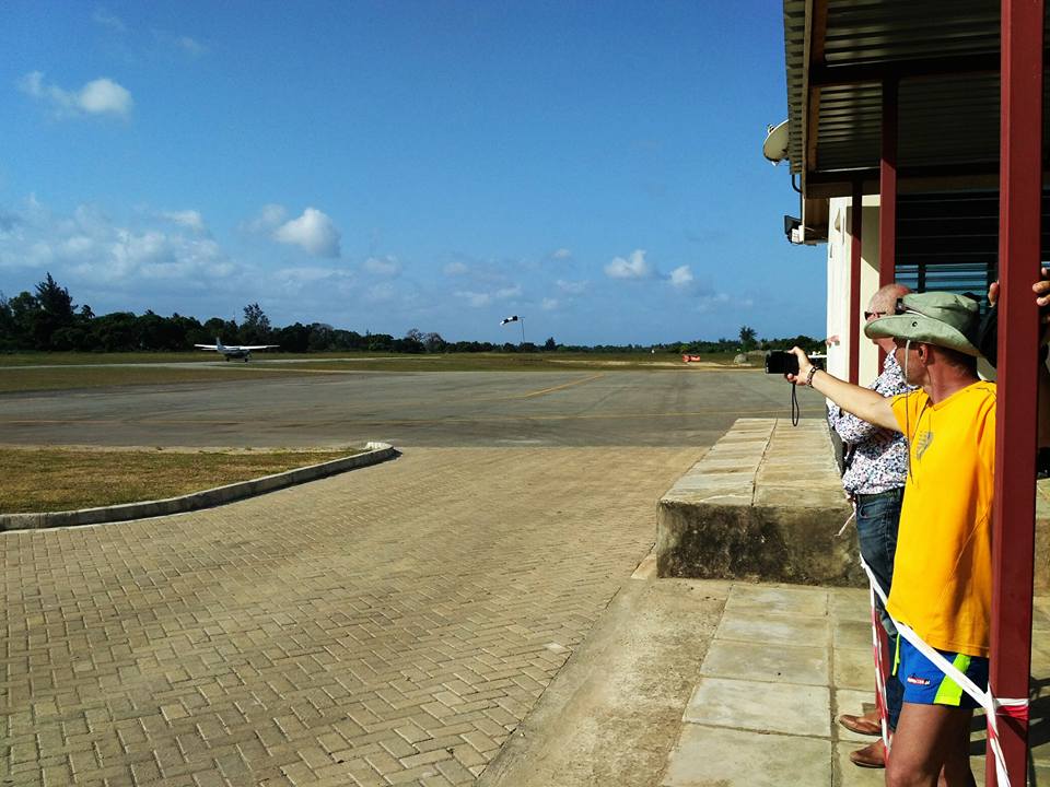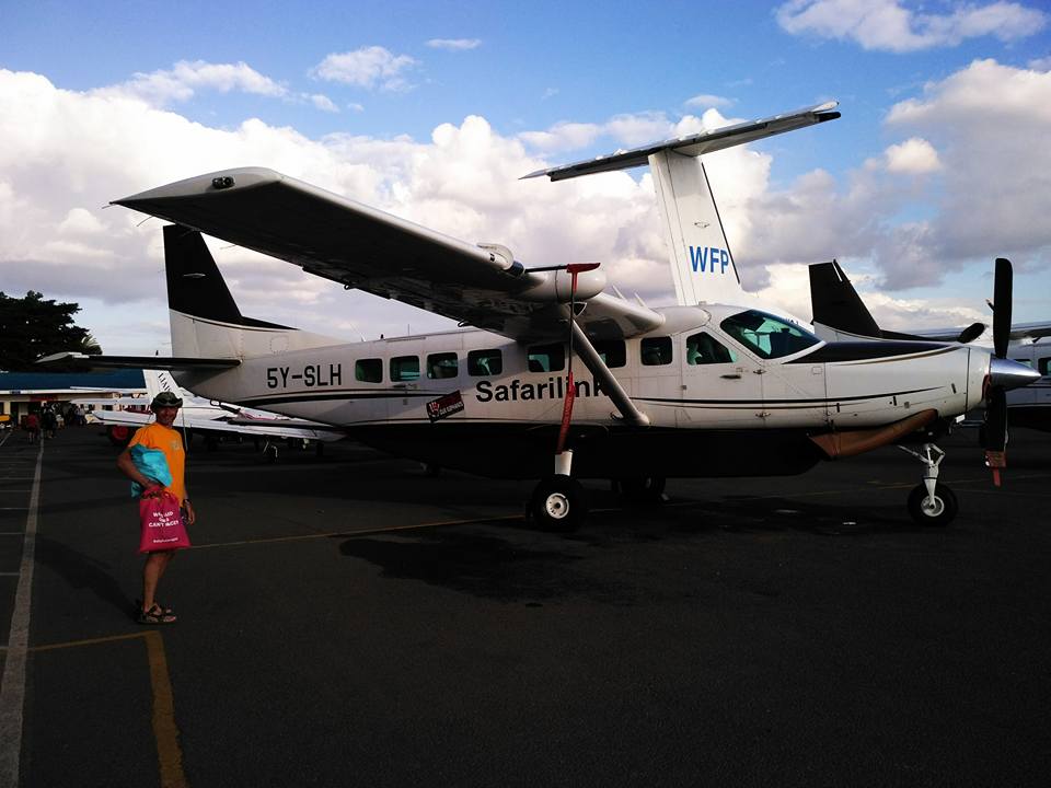 Po pamiątkowej sesji zdjęciowej usiedliśmy w barze. Zamówiliśmy piwa, sok i pizze z owocami morza. Zaprosiliśmy Abiego, by do nas dołączył. Mieliśmy około godziny, lot był dopiero o 15:30. Koło 13 Abu powiedział, że musimy się zbierać. Obawiał się korków na drodze i wspomniał też coś o kolejce do przeprawy promowej. Yacool zdziwił się, że mają tu prom, ja nie zareagowałam, ale próbowałam sobie przypomnieć czy gdzieś na mapie widziałam tu jakaś rzekę. Ruszyliśmy, ale jechaliśmy dość długo, Amina wspomniała, że to maksymalnie kwadrans z plaży w Diani. Ten prom nie dawał mi spokoju. Zapytałam yacoola czy Abu wie na które lotnisko ma nas zawieźć. Yacool zapytał Abiego czy przypadkiem nie wiezie nas do Mombassy. Abu potwierdził, że tak. Aaa! Ale my mieliśmy lot z Ukundy/ Diani. Abu się przestraszył. Zawrócił auto, a my zaczęliśmy się śmiać, że o mały włos a wylądowalibyśmy o 70 km od naszego lotniska. Po niecałej pół godzinie byliśmy na miejscu. Lotnisko w Ukundzie, to jeden pas startowy. Na moje oko nie ma więcej niż kilometr długości. Na szczęście lecimy małym samolotem. Przyglądałam się jak startował jeden samolot, wynosił się w powietrze na samym końcu pasa…