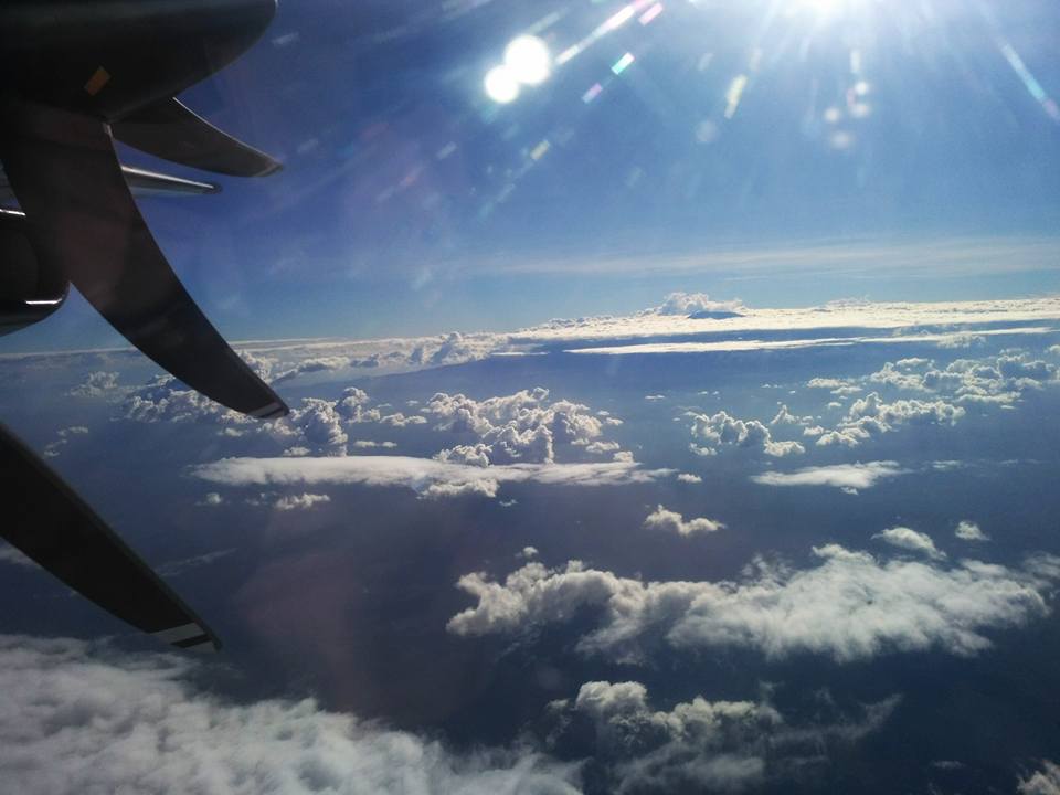 Z dwudziestu minutowym opóźnieniem przyleciał i nasz samolot. Byliśmy zawiedzeni, bo oczekiwaliśmy małej awionetki, która leciałaby niżej nad czarnym lądem. Nasz bombardier wzniósł się ponad poziom chmur. Było ich dużo i widoczność była kiepska. Ale szczyt Kili górował nawet nad chmurami. Trudno mi uwierzyć, że miesiąc temu byliśmy u jego podnóża.