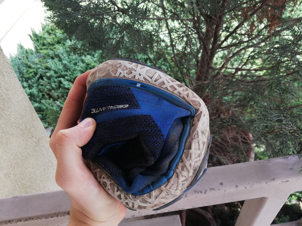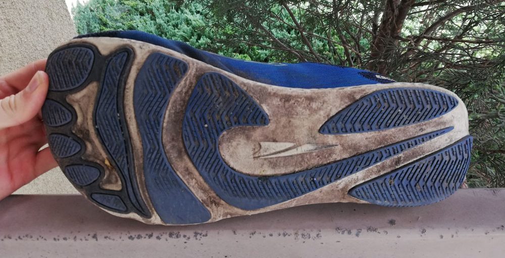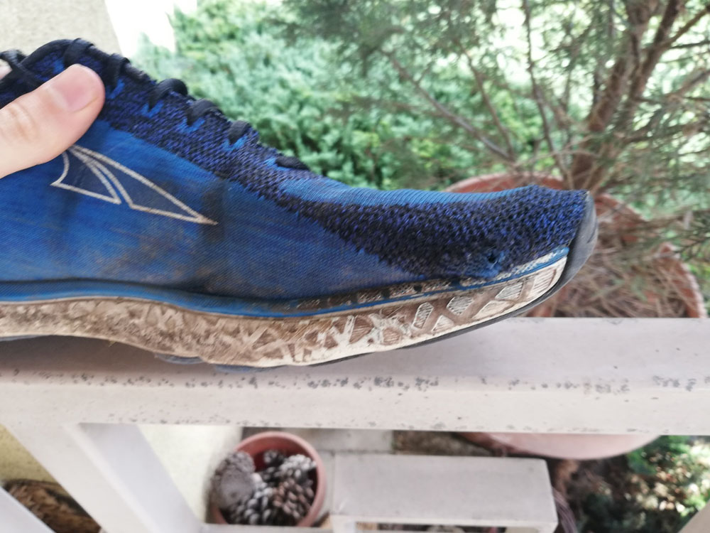 Pod tym względem zostałem zaskoczony bardzo pozytywnie, większość moich butów kończyła swoje życie przetarciem nad palcami. Egzemplarz na zdjęciu ma jakieś 1300km przebiegu i jak widać z cholewką nie dzieje się nic złego, jedynie ostatnio zaczęło się pojawiać małe przetarcie, co ciekawe tylko na jednym bucie. Na podeszwie widać normalne ślady zużycia, a jeśli chodzi o amortyzację, to nie zauważyłem jakiegoś znacznego ubicia pianki.
