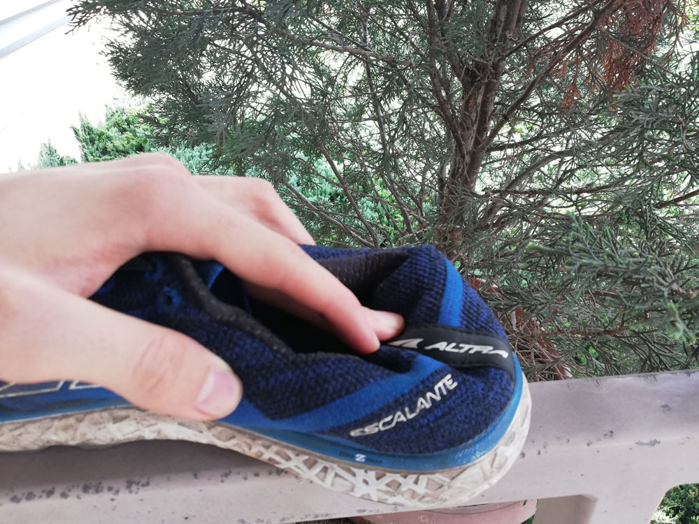 Wszystkie buty z kolekcji Altry charakteryzują dwie technologie: Zero Drop i FootShape Toe box. Pierwsza jest niczym innym niż zerowym spadkiem pięta – palce, innymi słowy jest tyle samo pianki pod śródstopiem, co pod piętą. Druga odnosi się natomiast do kształtu przodu buta. Wyraźnie rozszerza się od śródstopia, co powoduje, że palce mają bardzo dużo miejsca na wszelkie ruchy. Model Escalante, w którym biegam jest przeznaczony na asfalt i pod względem amortyzacji plasuje się pośrodku oferty. Do wyboru mamy jeszcze lekką startówkę i cięższą treningówkę, podobną konstrukcyjnie do Escalante.