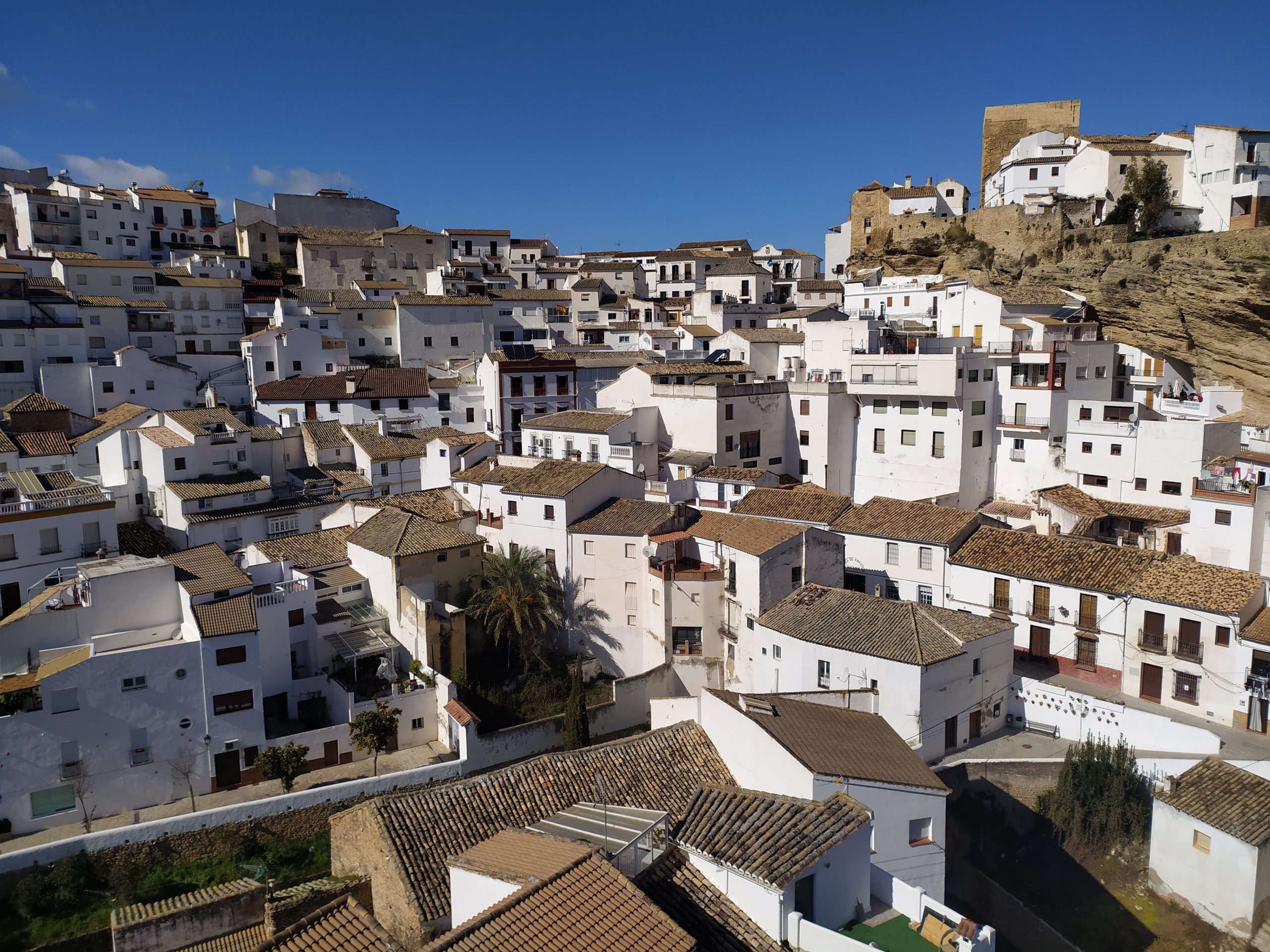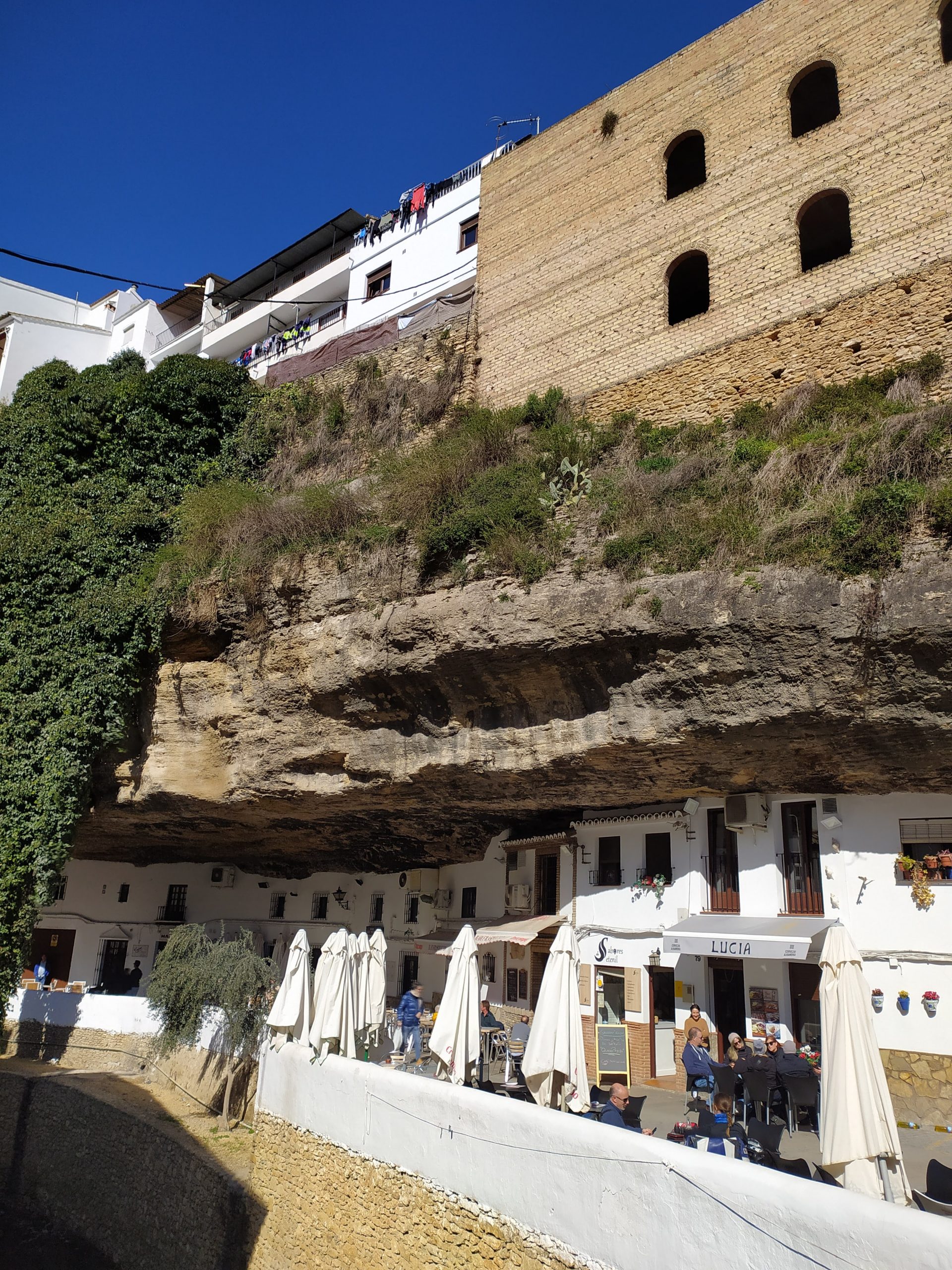 Ponieważ pogoda była coraz lepsza, postanowiliśmy to wykorzystać i zobaczyć coś jeszcze w okolicy. Pojechaliśmy do wioski Setenil de las Bodegas. Słynie ona z domów wykutych w skale. Przeszliśmy się wąskimi uliczkami, wśród skalnych nawisów. Zwiedzanie takich miejsc poza sezonem daje komfort spacerowania. Kawa, coś na ząb, kilka punktów widokowych i jazda dalej.