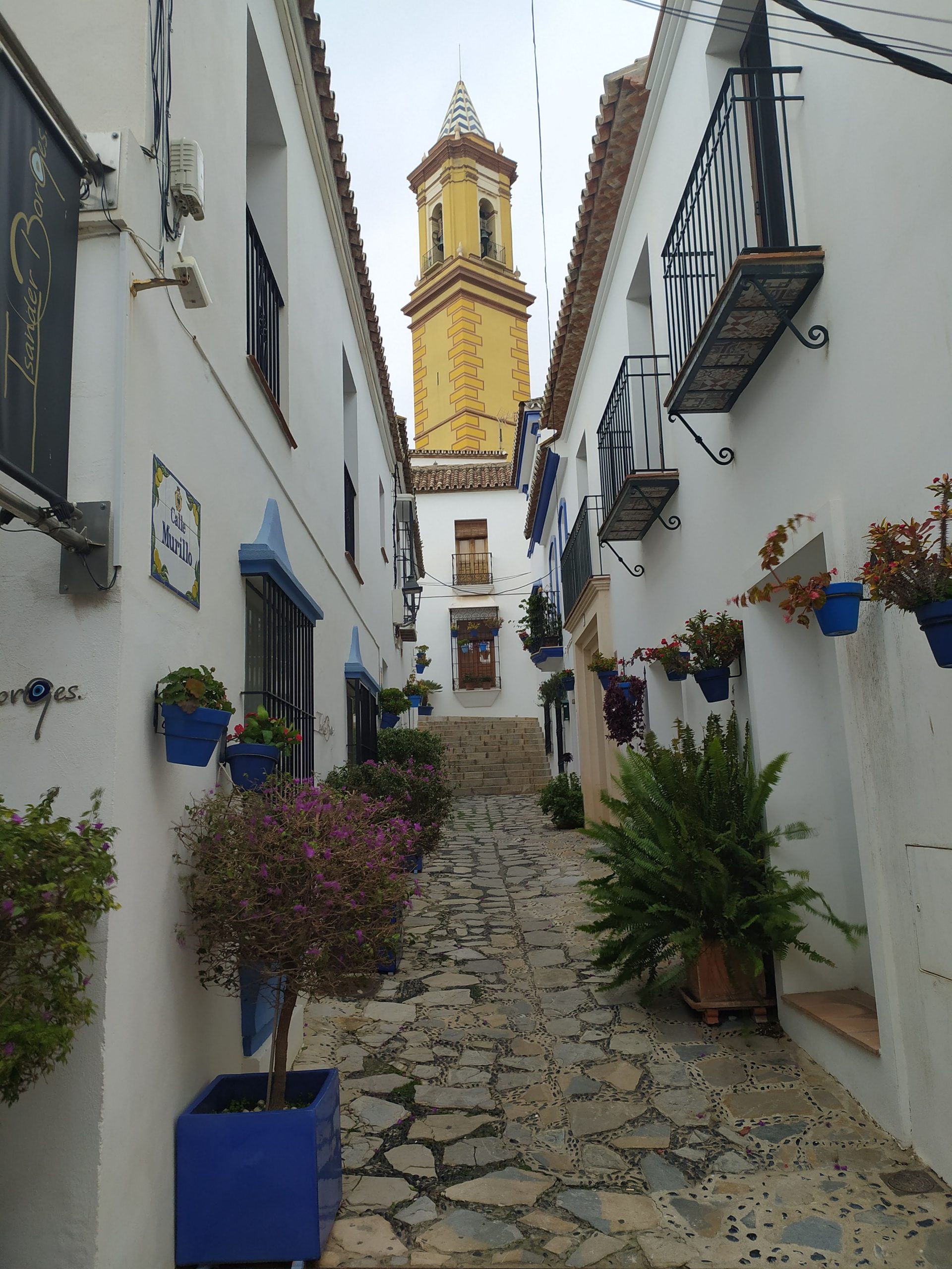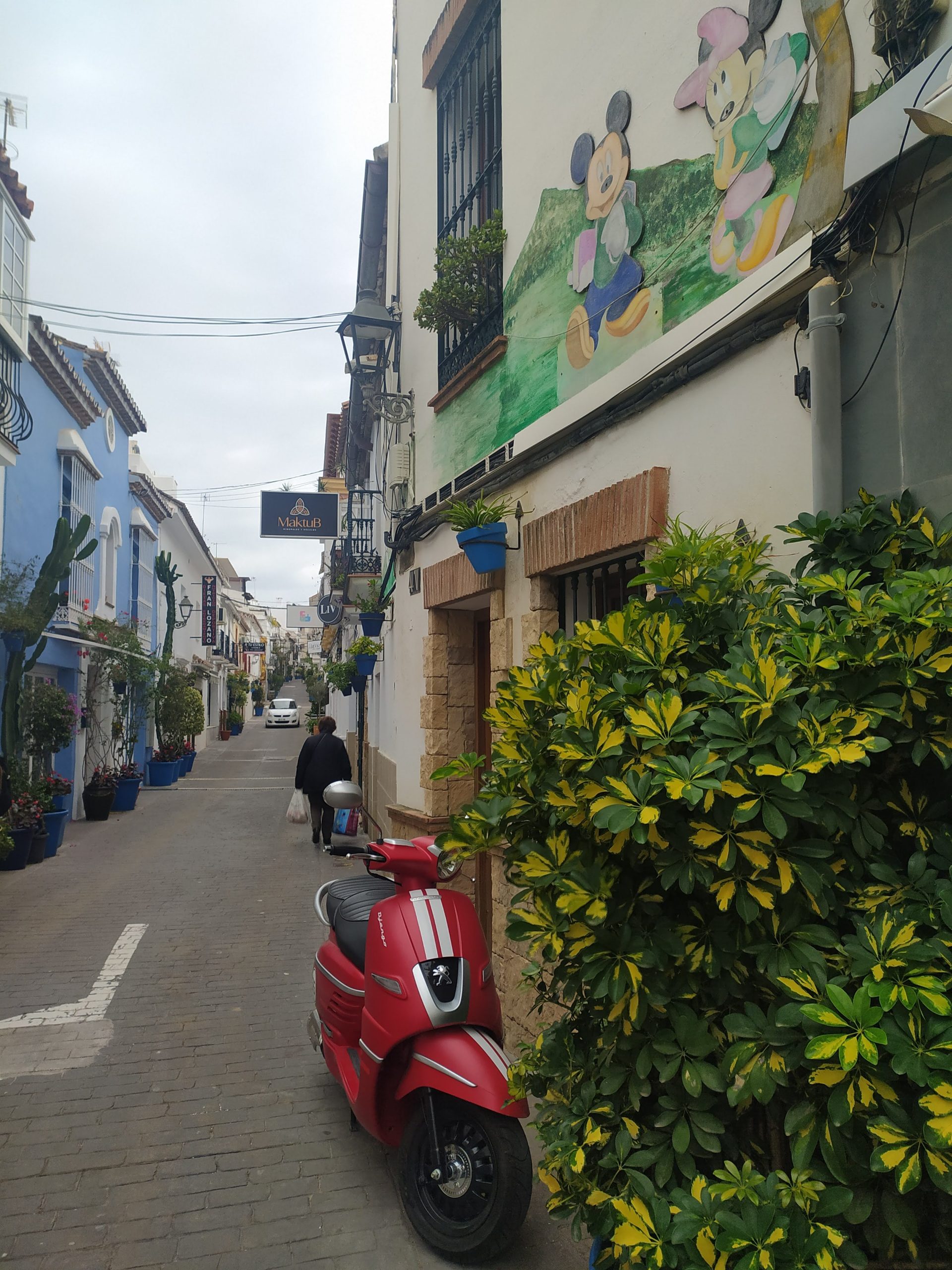Po śniadaniu poszliśmy pochodzić po naszym miasteczku, Esteponie. Tata wyczytał, że w nowszej części jest dużo murali. Na starówce natomiast uliczki, gdzie każda ozdobiona jest innym kolorem doniczek, a także tablice z fragmentami poezji, w tym Wisławy Szymborskiej. Ruszyliśmy więc niespiesznie na ich poszukiwania.