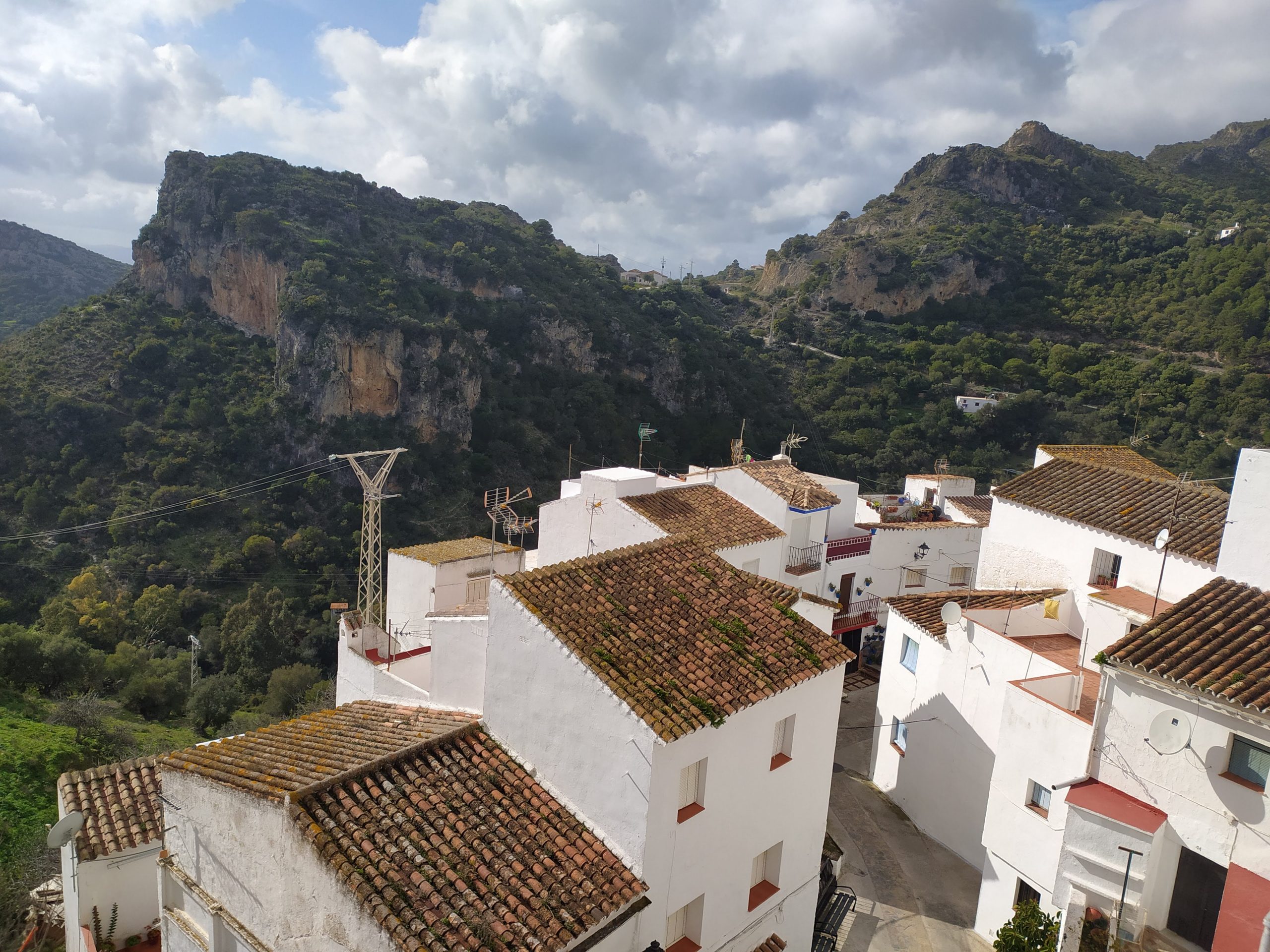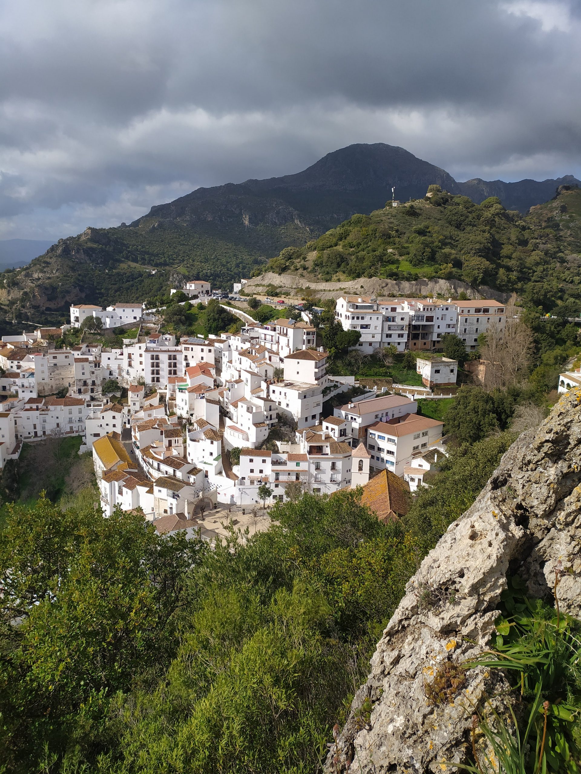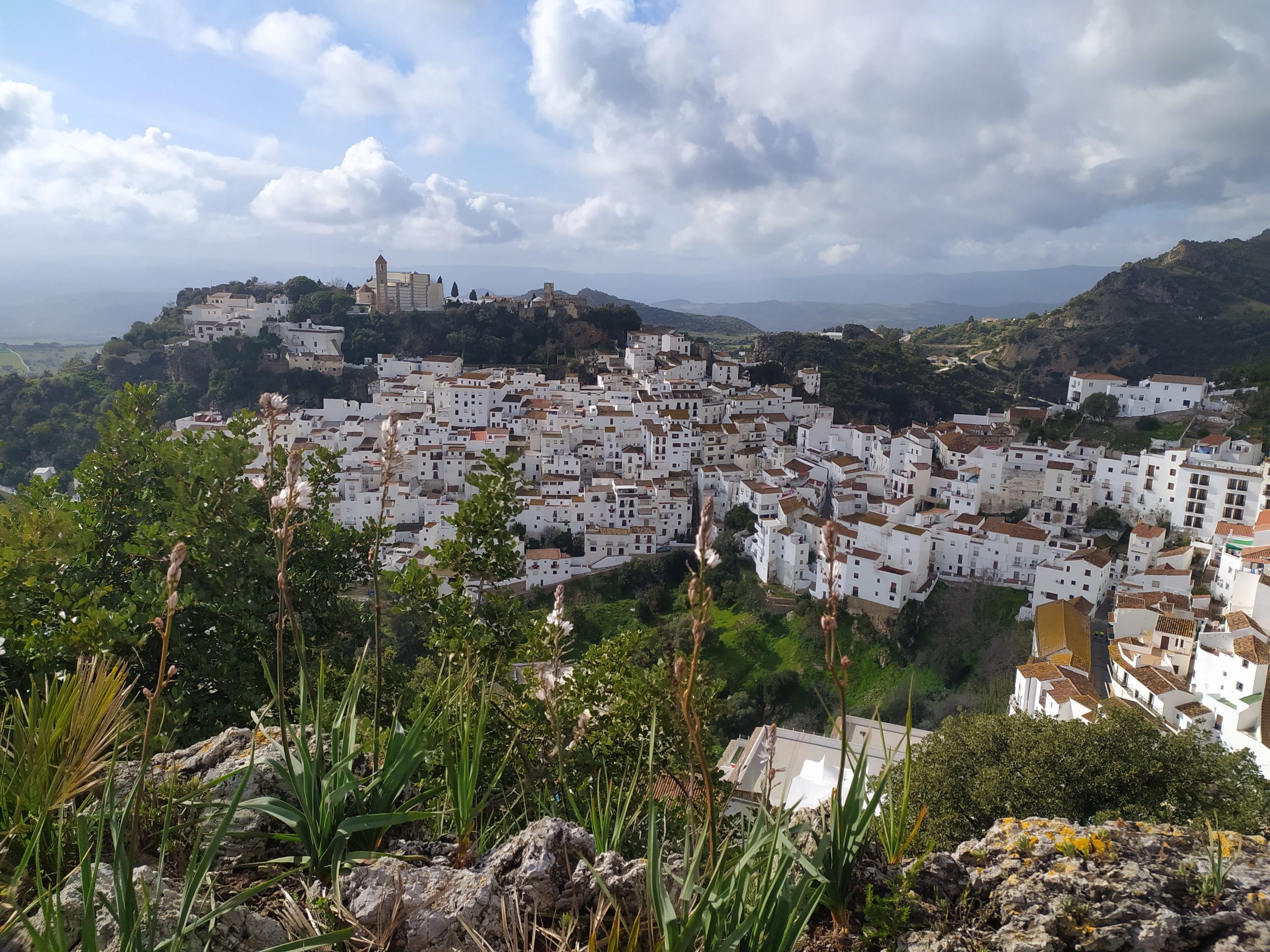 Casares jest właśnie takim miejscem. To typowa biała andaluzyjska wioska, położona na stromym zboczu, otoczona zielonymi górami. Wąskie, mega strome wybrukowane uliczki, białe fasady domów i oczywiście zamek na samej górze. Przeszliśmy całe miasteczko, zwiedziliśmy ruiny zamku i biały cmentarz na szczycie wzniesienia. Jest tu też tyrolka, którą można przejechać przez wąwóz, ale dziś była nieczynna (wg googla czynna jest tylko w niedzielę i tylko przez 2h).