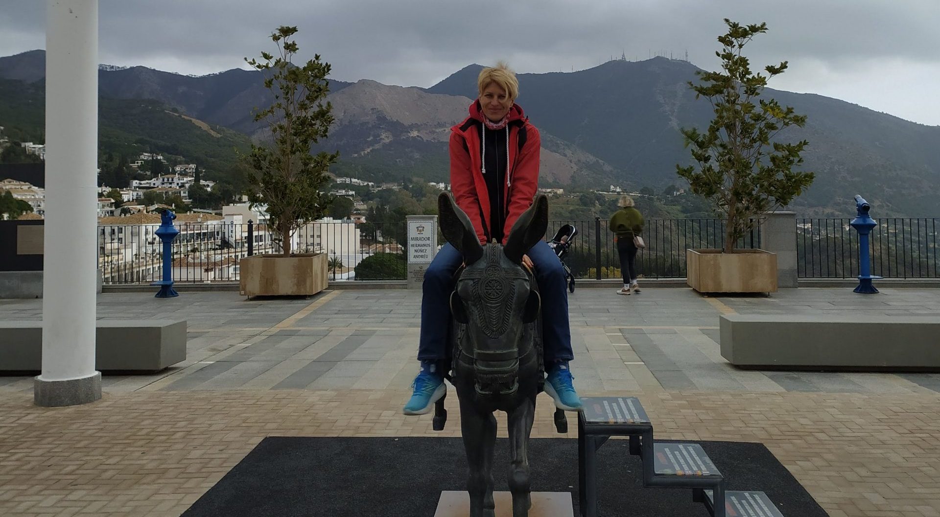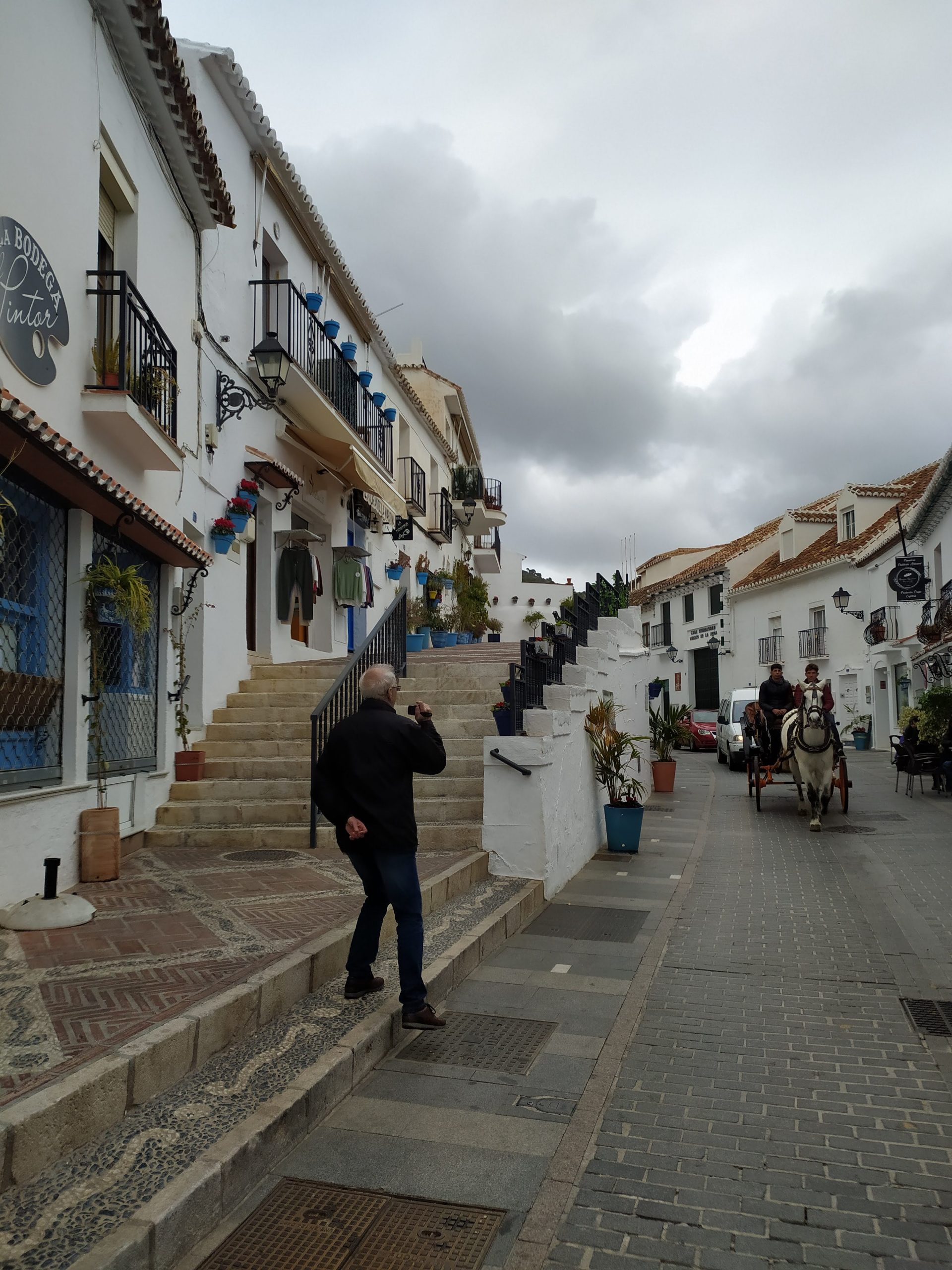 Lot mieliśmy po południu, więc w drodze na lotnisko chcieliśmy gdzieś jeszcze zajechać. Po drodze do Malagi leży miasteczko Mijas. To kolejne białe andaluzyjskie górskie pueblo. Krętą drogą dojechaliśmy do jego centrum, zaparkowaliśmy i poszliśmy na spacer.
