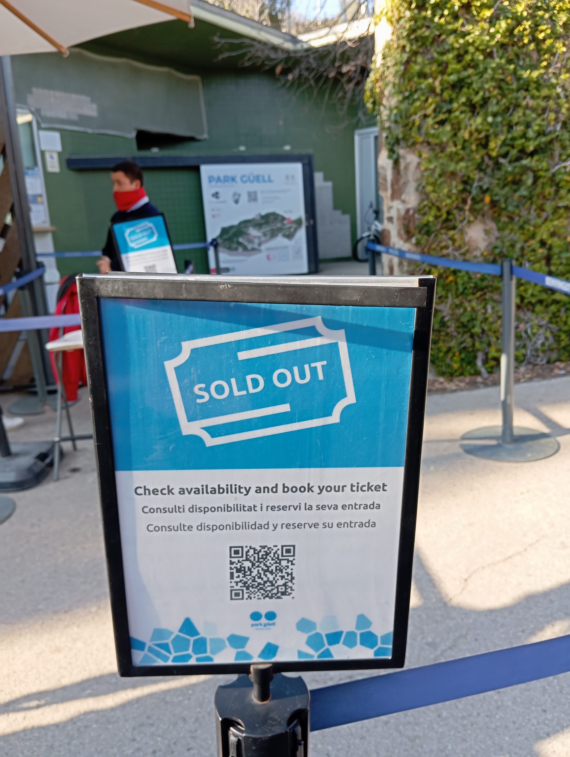 Potem autobusem Seba wrócił odpoczywać do naszego mieszkania, a my z Jackiem pojechaliśmy pozwiedzać. Udało mi się go namówić na spacer po Parku Guell. Wysiedliśmy za wcześnie z autobusu i trochę się powspinaliśmy na wzgórze, na którym się znajduje. Pamiętałam z mojej wycieczki do Barcelony, sprzed ćwierć wieku, że bardzo mi się tam podobało. Zaskoczyło mnie, że wejście do parku jest płatne, ale jeszcze bardziej wiszące wszędzie kartki z napisem „sold out”. Niedowierzając podeszłam do okienka zapytać o co chodzi z tymi biletami. Pan potwierdził, że bilety wstępu są wyprzedane na kolejne dwa dni! Nie mogłam w to uwierzyć, przecież park to park, jak to możliwe, że nie można do niego wejść. Tak samo dziwili się inni turyści. Pan w okienku stwierdził, że „Barcelona to była tu kiedyś, teraz jest Las Vegas…”