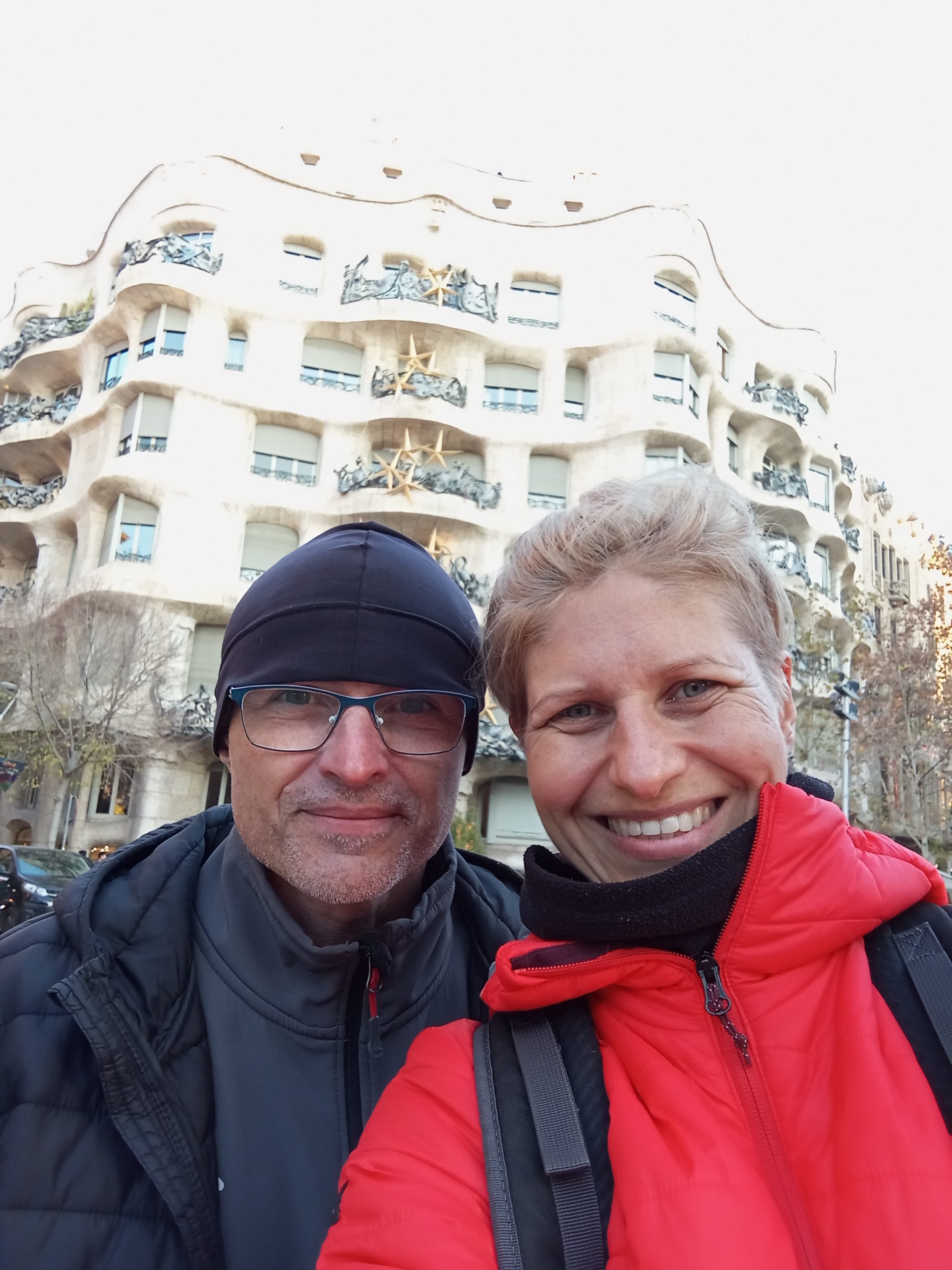 Widok niebieskiego nieba z rana przekonał mnie, by iść pobiegać. Aby uniknąć problemów z trafieniem do domu, biegłam długimi prostymi ulicami, bez kombinowania. Rano było całkiem rześko, myślę, że nie więcej niż 6-7 st. Zrobiłam przyjemne 5km w ramach rozruchu i wróciłam do chłopaków na śniadanie. Jutro może pobiegnę sobie do morza. Po dwóch dniach w mieście już pewniej się czuję logistycznie. Poza tym ulice przecinają się tu pod kątem prostym (oraz trafiłam na dwie bardzo długie ulice przekątne – jedna ma nawet nazwę Avenida Diagonal) więc przy elementarnym ogarnięciu i kilku punktach charakterystycznych poruszanie się po Barcelonie nie jest trudne.