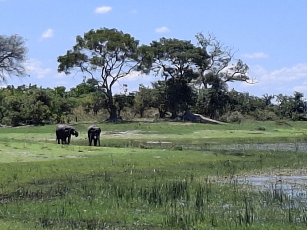 Wsiedliśmy do naszych aut i w chwili, gdy ruszyliśmy niedaleko od nas do wody wyszły z buszu dwa słonie. Wyskoczyliśmy z aut na nieduży mostek, by im się przyjrzeć. Przez chwilę piły wodę, potem odwróciły się i zniknęły w buszu.