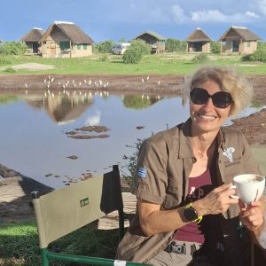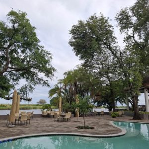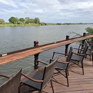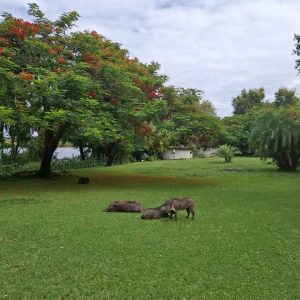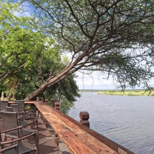 Zatrzymaliśmy się na lunch w znanym miejscu, popularnym wodopoju słoni w porze suchej „Elephant Sand’s”. Wokół oczka wodnego stały duże namiotowe domki. Można tu nocować i obcować z dziką przyrodą.