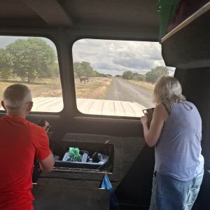 Gdy podjeżdżaliśmy, opuszczaliśmy wielkie okna naszej ciężarówy i spokojnie się im przypatrywaliśmy. One też na nas zerkały kątem oka, czasem po chwili odchodziły w głąb buszu. Wspaniałe zwierzęta. To bardzo przykre, że według statystyk co kwadrans ginie jedno to zwierzę. Bądź z rąk kłusowników bądź w wyniku legalnych polowań. W Botswanie prawo pozwala strażnikom parku strzelać do kłusowników „kill to die”, gdy natrafią oni na kłusownika celującego do słonia. W ciągu ostatnich stu lat populacja słonia afrykańskiego zmniejszyła się o około milion osobników.