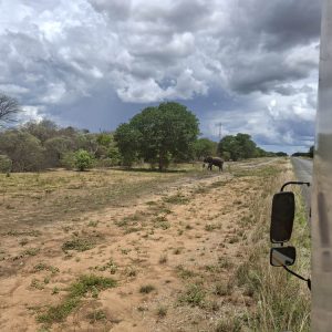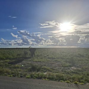 Opuściliśmy teren północnej Botswany i styku 4 krajów i ruszyliśmy na południe. Kolejny punkt na trasie naszej podróży to miejscowość Nata. Droga, jedyna asfaltowa prowadziła pionowo z Kasane w dół. Ruch na drogach nie był zbyt duży. No, ale przede wszystkim w końcu pojawiły się wyczekiwane słonie. Były przy drodze spokojnie pochłaniając kilogramy liści z zielonych o tej porze krzaków i drzew.