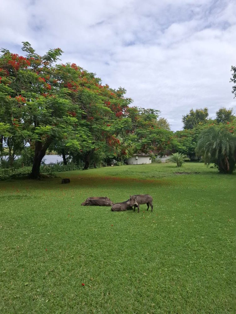 Zatrzymaliśmy się na lunch w znanym miejscu, popularnym wodopoju słoni w porze suchej „Elephant Sand’s”. Wokół oczka wodnego stały duże namiotowe domki. Można tu nocować i obcować z dziką przyrodą.