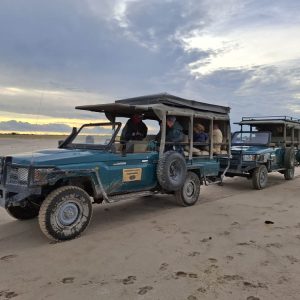 Droga zajęła nam znacznie więcej czasu niż planowaliśmy. Asfalt był fatalny, miejscami go w ogóle nie było. Przyjechaliśmy do Planet Baobab trochę spóźnieni. Więc szybko chwyciliśmy co potrzebne, zmieniliśmy ponownie naszą ciężarówkę na jeepy safari i pędem przez bezdroża ruszyliśmy na safari z surykatkami.