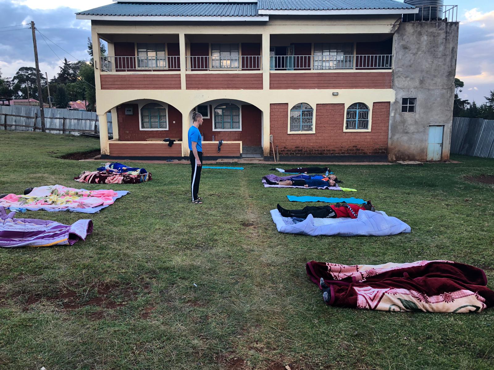 Po południu przyszła ekipa biegaczy z Ugandy na jogę. Dołączyli do naszych stałych kenijskich partnerów treningowych. Bartek podnosi nam poprzeczkę zadając coraz bardziej wymagające assany. Ale jak twierdzi dobrze nam idzie. Kenijczycy świetnie już rozumieją siawassanę i jak tylko usłyszą to słowo, ubierają się ciepło i kładą pod kocem na moment relaksu po zajęciach.