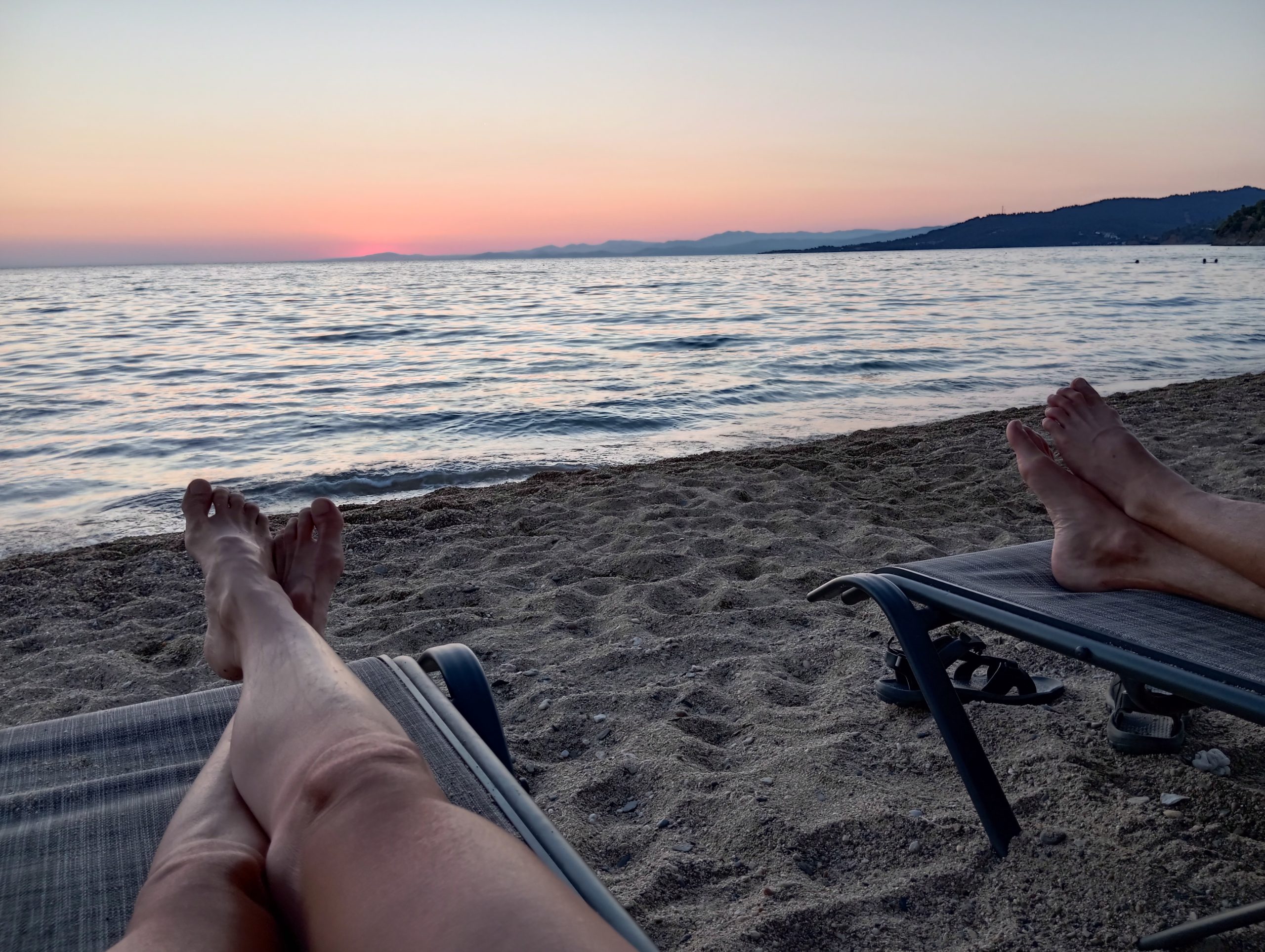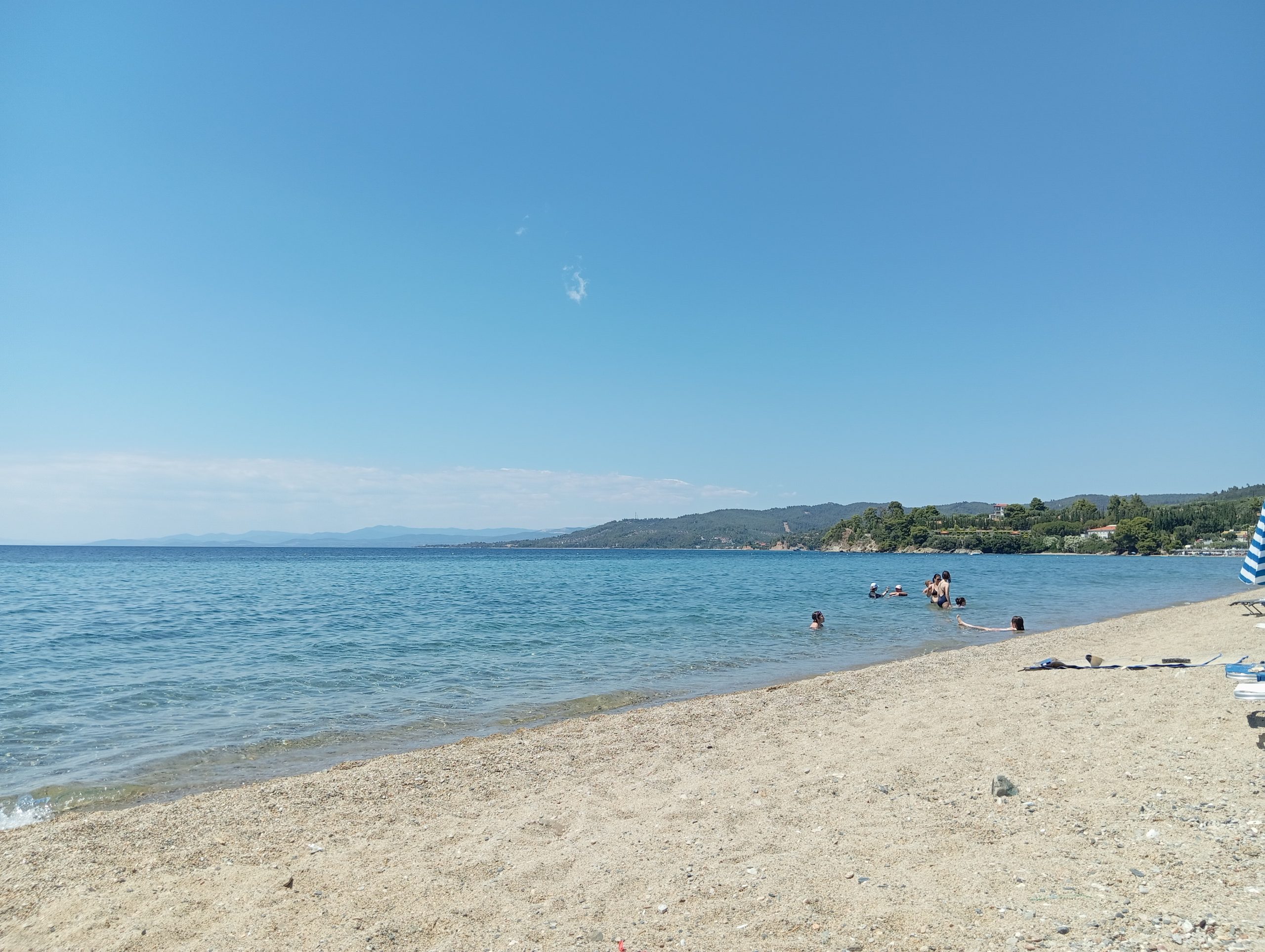 Jeżdżąc po Sithoni widzieliśmy wiele szutrowych dróg prowadzących w góry. Mogłyby to być fajne trasy zarówno na trekkingi jak i na jazdę ebikami. Do sprawdzenia kiedyś przy mniej upalnej pogodzie. Tym razem postawiliśmy głównie na pływanie. Yacool śrubował rekordy w wodzie, 5km na raz to już konkret jak na brak pływania na co dzień. Ja sobie zbierałam dystans krótszymi odcinkami.