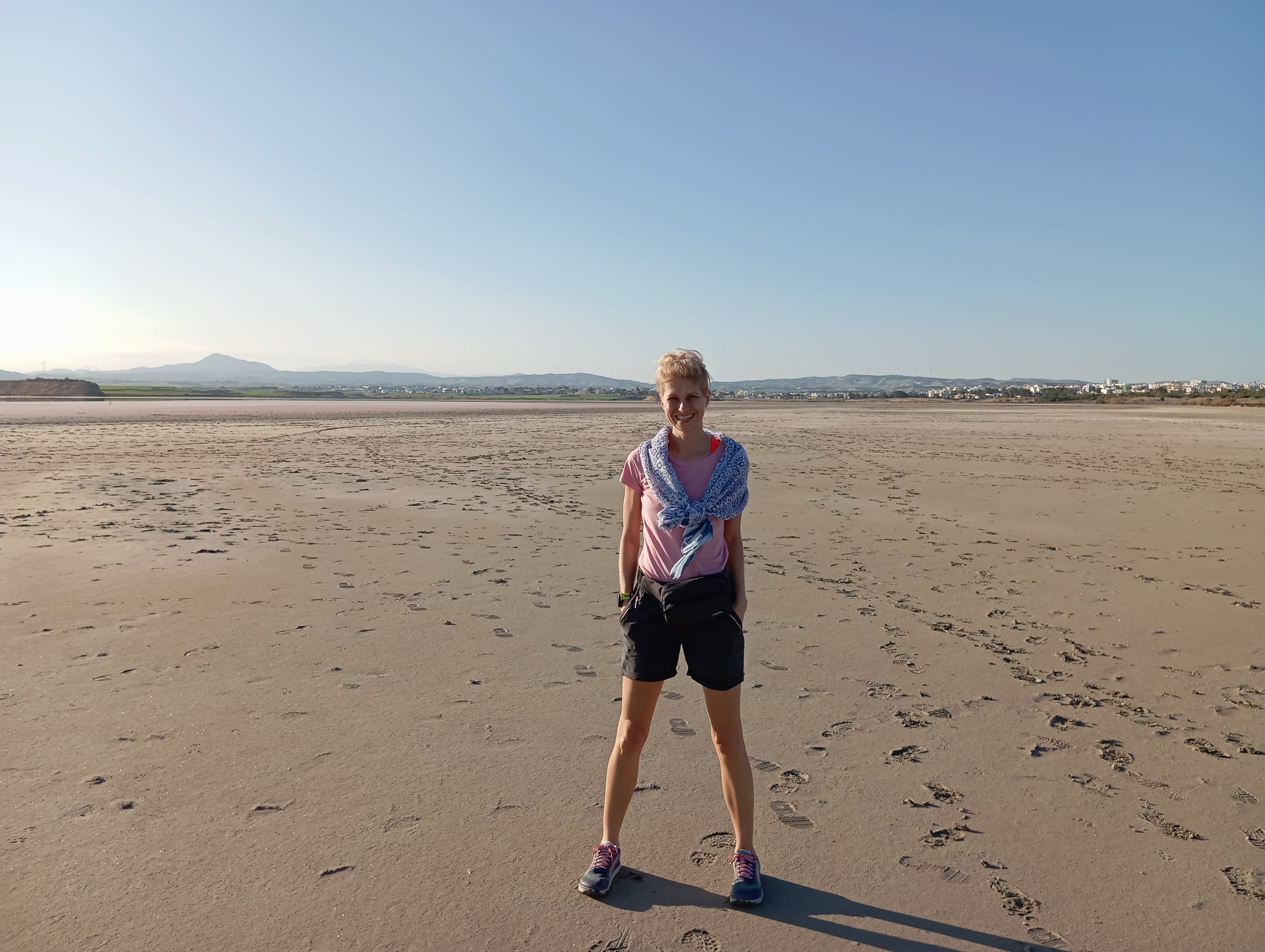 Z Nikozji pojechaliśmy do Larnaki. Byłam ciekawa miasteczka i żerujących przy słonym jeziorze różowych flamingów. Były jedynie mewy, które z daleka nas zwiodły. Jezioro w dużej mierze wyschnięte, a piasek błyszczał w słońcu na różowo.