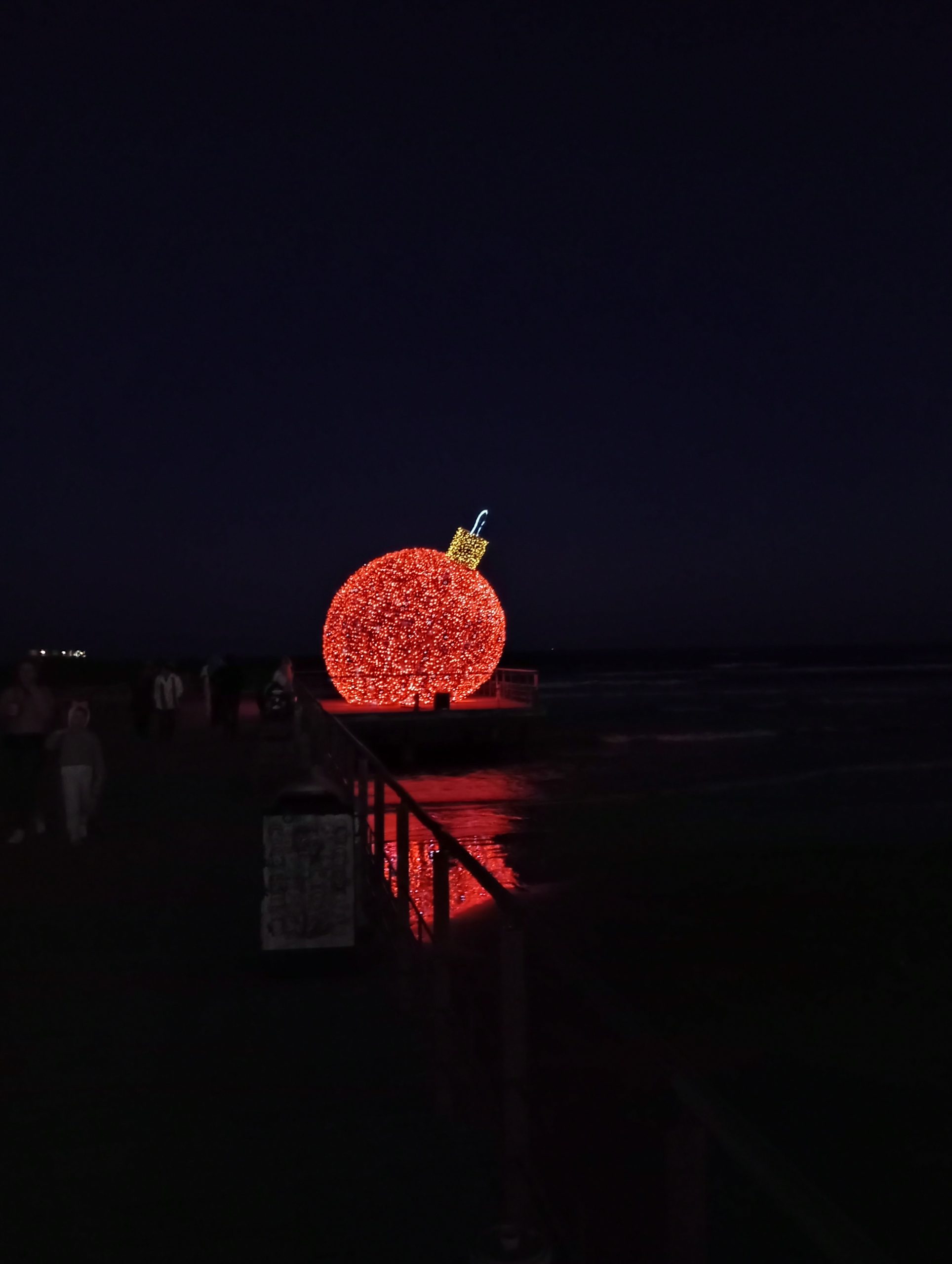 Po 17 było już zupełnie ciemno. Na molo z daleka błyszczała wielka czerwona bombka, a nad promenadą zawieszone świąteczne światełka.