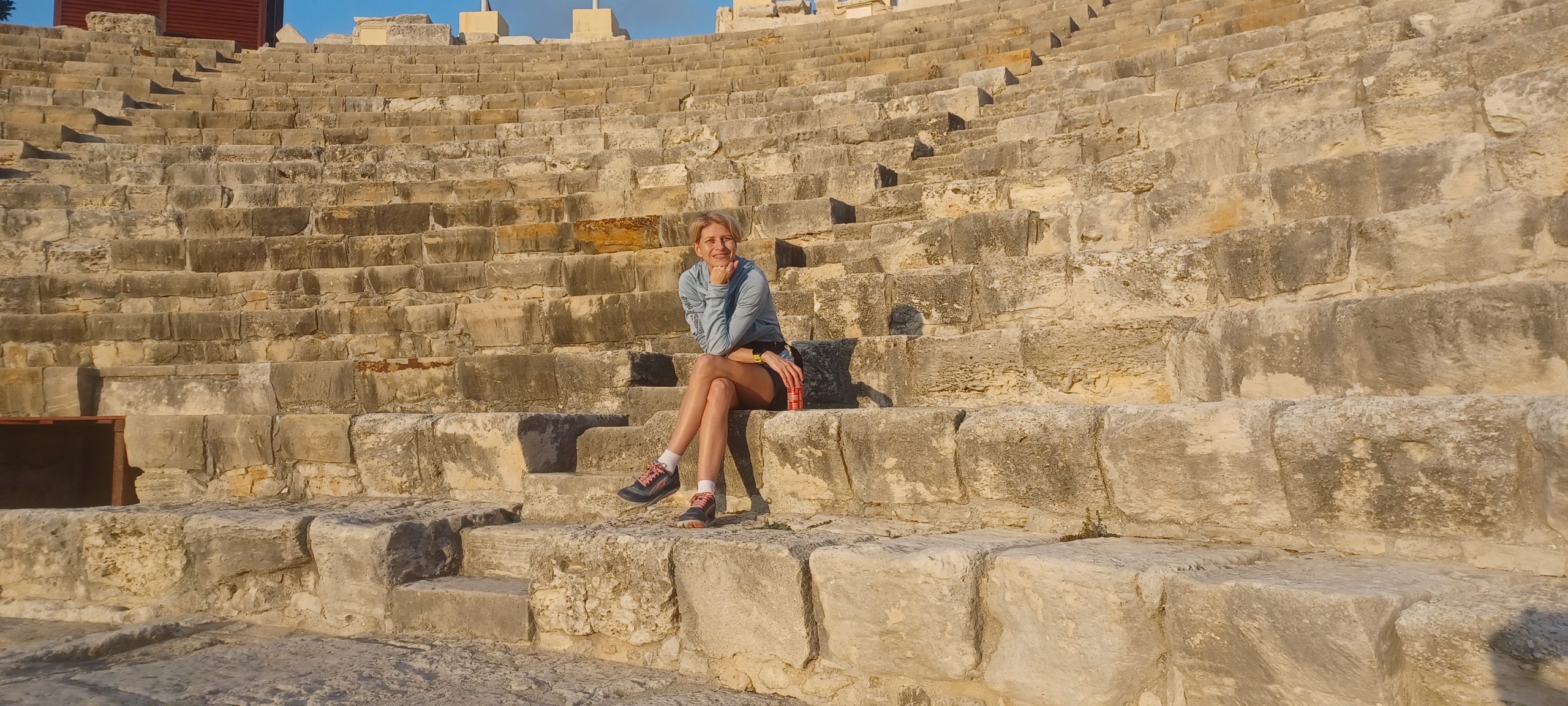 W drodze do Limassol zajrzeliśmy jeszcze do dwóch stanowisk archeologicznych – Sanctuary of Apollo Hylates, gdzie yacool robiąc mi zdjęcia pobawił się perspektywą (wstęp 2,5 EUR/os, młodzież za free) i wykopalisk w Kourion ze starożytnym teatrem (wstęp 4,5 EUR/os, młodzież za free). Amfiteatr nie tak duży jak ten chociażby w Epidavros, który kilka lat temu zwiedzaliśmy, ale także ze świetną akustyką. Do tego wykopaliska odsłoniły nieźle zachowane mozaiki. Uwielbiam takie miejsca, bo panuje w nich taki spokój. Dodatkowo, o tej porze roku i dnia poza nami kręciło się tam jeszcze raptem kilka osób. Miejsca tego typu mają dla mnie niesamowitą atmosferę. Bez względu na stopień zachowania ruin czuję ich moc. Lubię sobie po prostu usiąść pośrodku tych kamieni i obelisków, zamknąć oczy i wyobrazić życie toczące się tam kilka tysięcy lat wcześniej. Do tego stanowisko w Kourion położone jest na wzgórzach z bajecznym wprost widokiem na morze. Cudowne miejsce na zachód słońca.