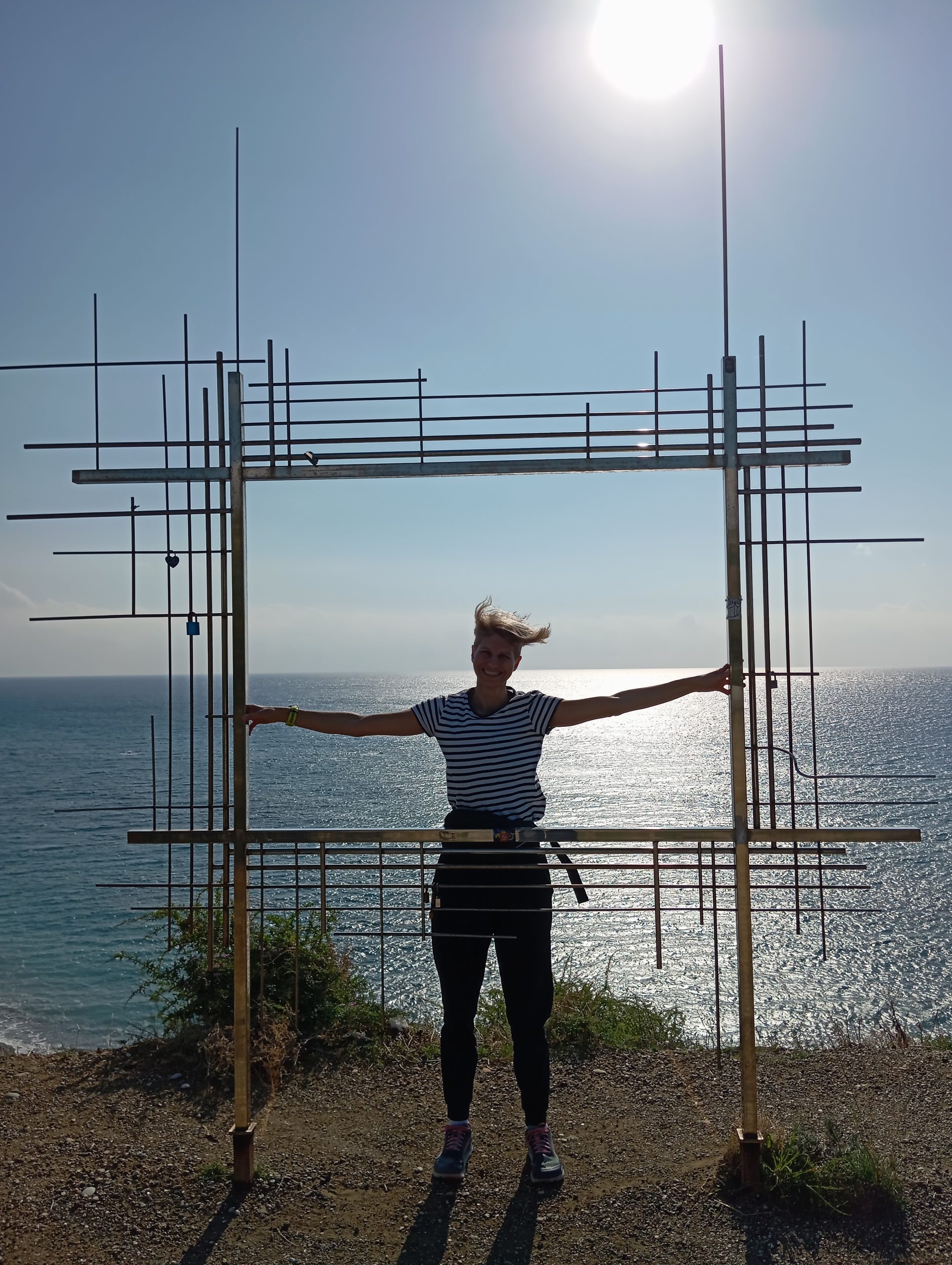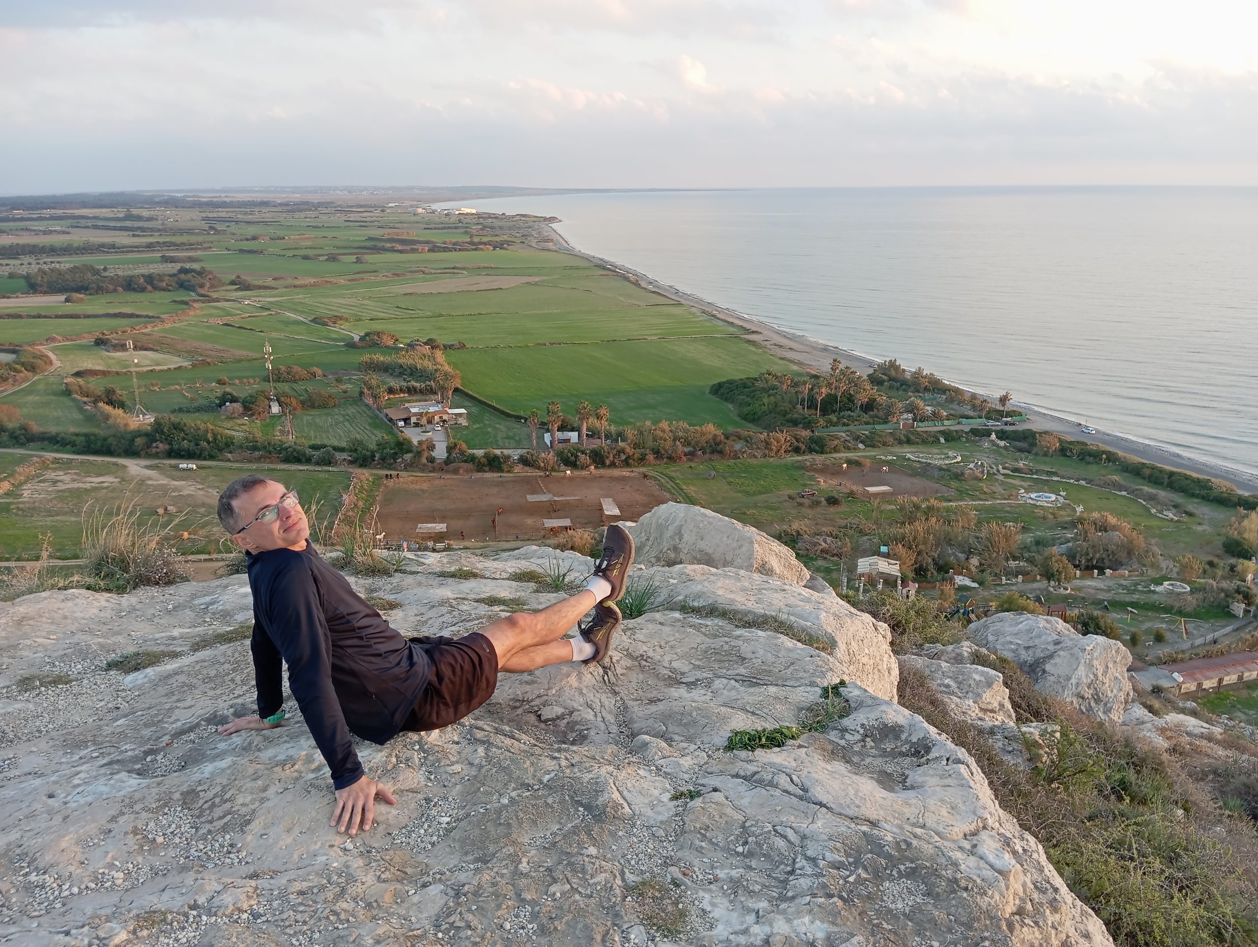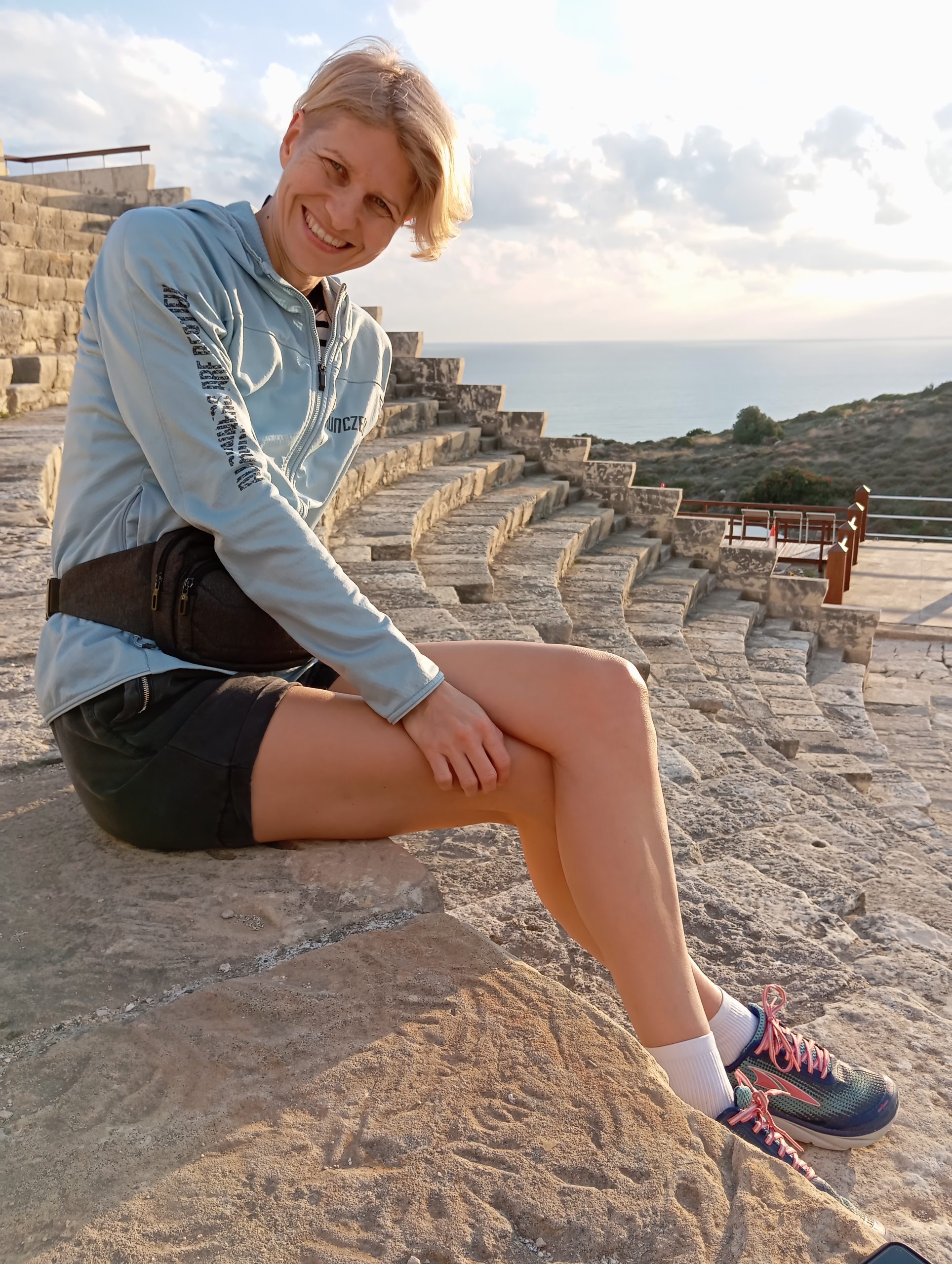 Zahaczyliśmy o Skałę Afrodyty, na którą wlazłam. Chociaż nie wiemy do końca czy ta słynna skała to ten duży kawał skały czy mniejsza leżąca za nią, głębiej. Później pojechaliśmy na krótki spacer szlakiem Afrodyty. Będąc tu chcemy przy okazji sprawdzić różne miejsca pod kątem biegania. Ścieżka fajna, wśród zieleni, ale mnóstwo much i dużo wystających z ziemi kamieni, o które biegnąc łatwo się potknąć.