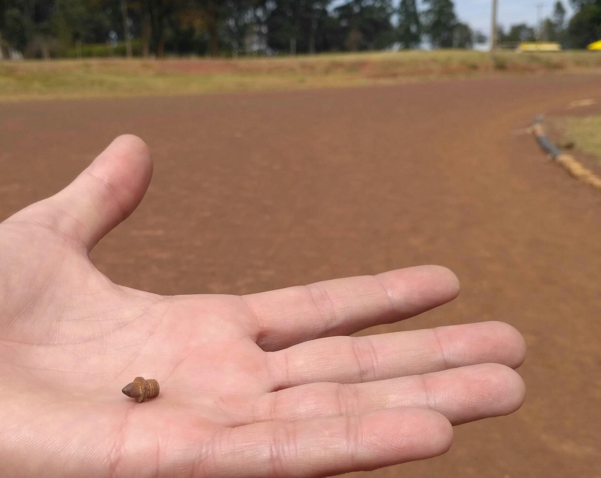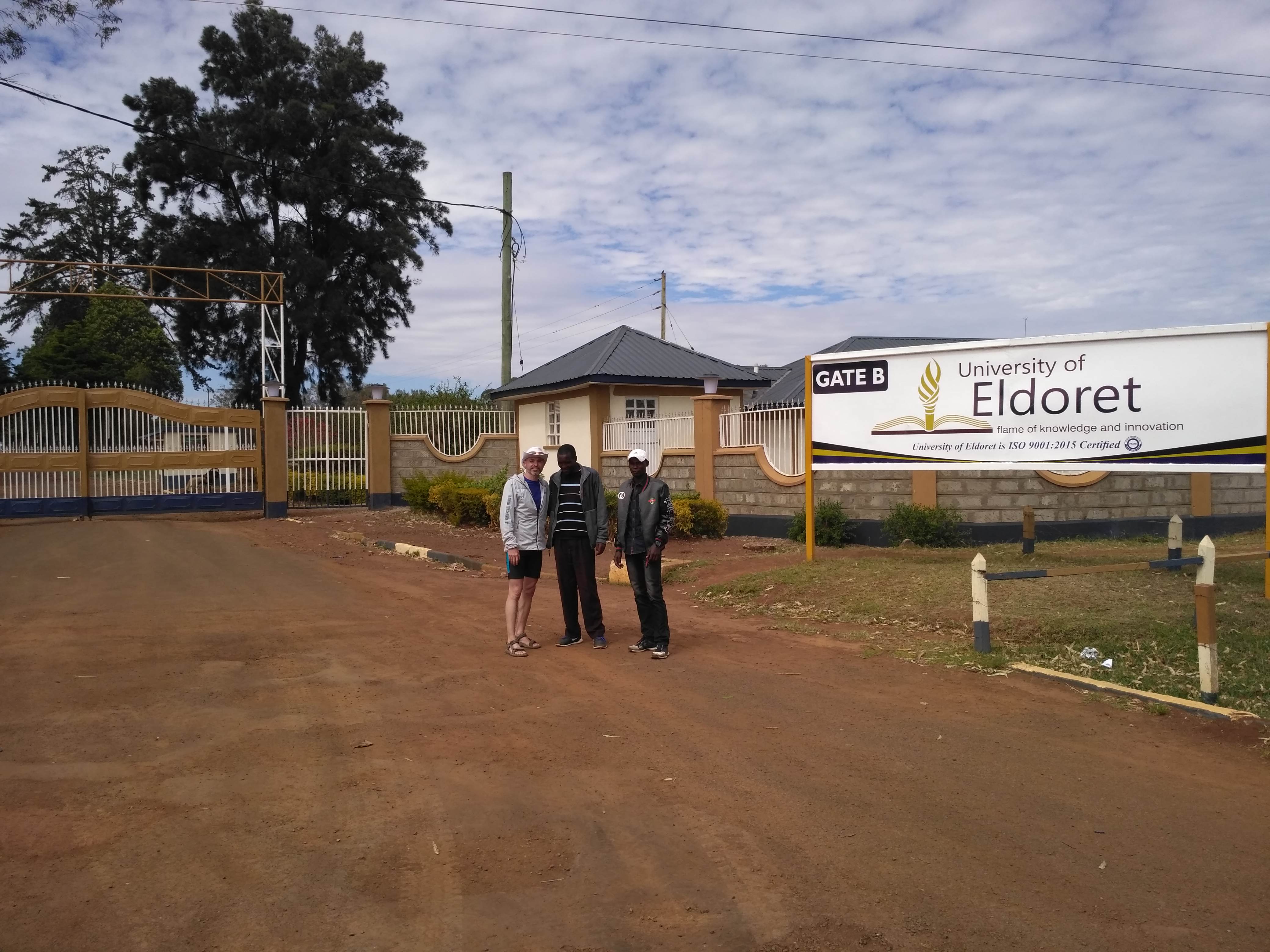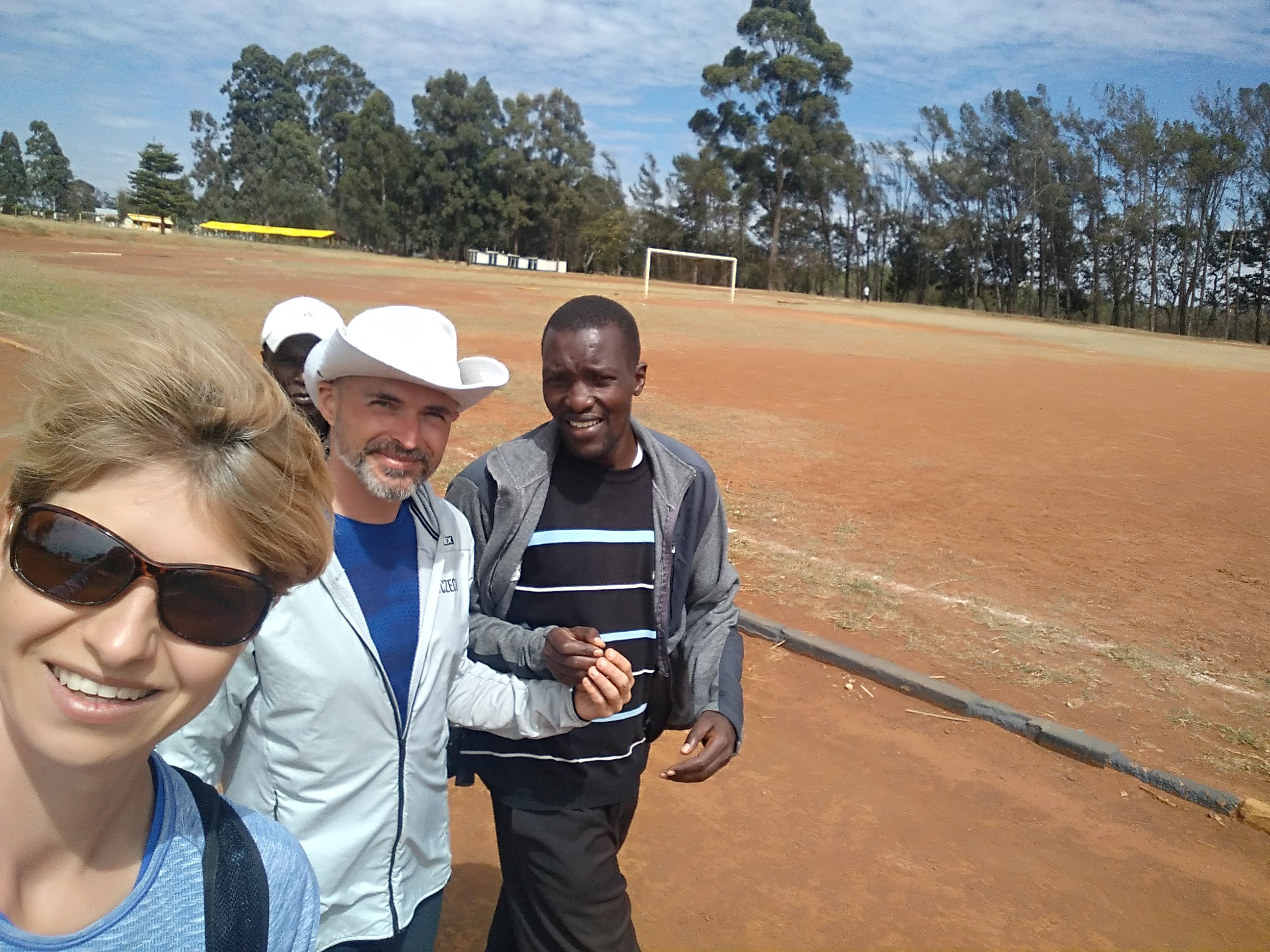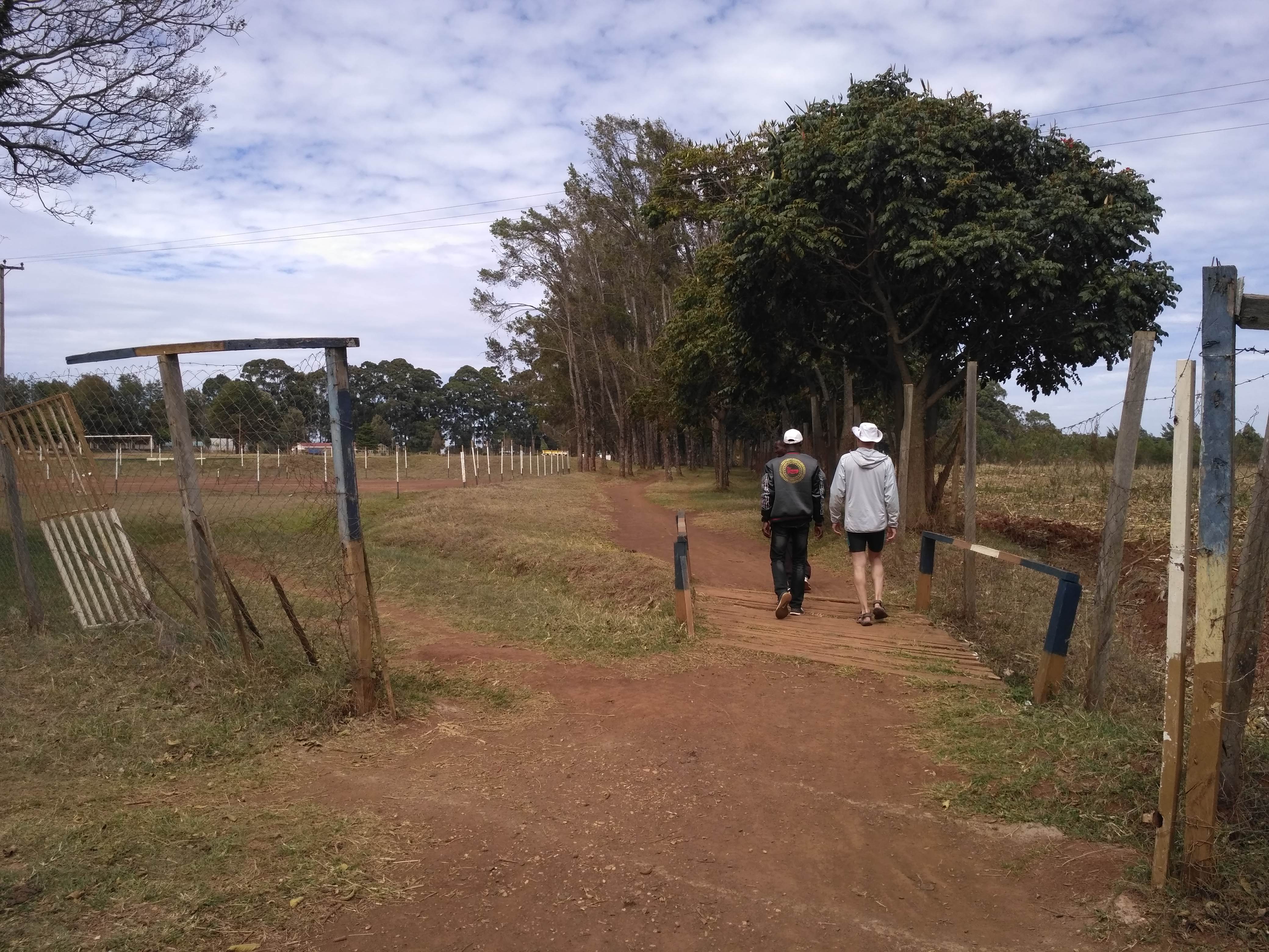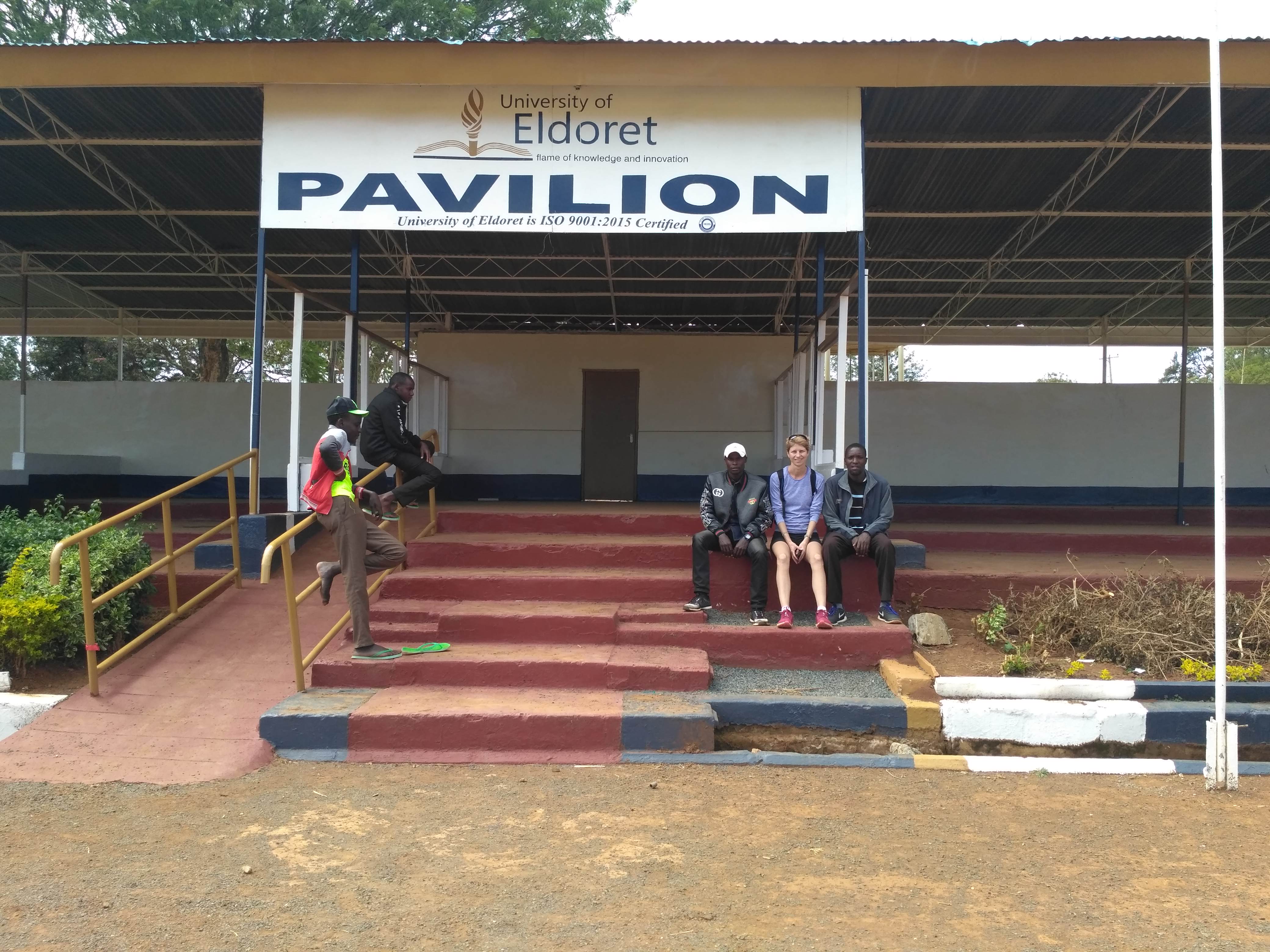 Wysiedliśmy na krzyżówce przed wjazdem do centrum. Tam złapaliśmy drugi podjazd, którym podjechaliśmy do uniwersyteckiego campu, gdzie znajduje się jeden ze stadionów. Przeszliśmy się dookoła po bieżni. Pierwszy tor, tak jak kiedyś na Kamariny był bardziej wydeptany i tworzył zagłębienie w kształcie podłużnej rynny. Meshack znalazł na nim wkręt do kolców lekkoatletycznych, kto wie może to Kipchoge go zgubił… Belka do biegów przez przeszkody także nosiła mocne ślady zużycia. Była wręcz wygięta, a gdy yacool się o nią oparł, zaczęła cała się telepać. Linię 200 metrów, skąd rozpoczynają biegać odcinki wyznacza plastikowa zielona butelka nadziana na patyk.