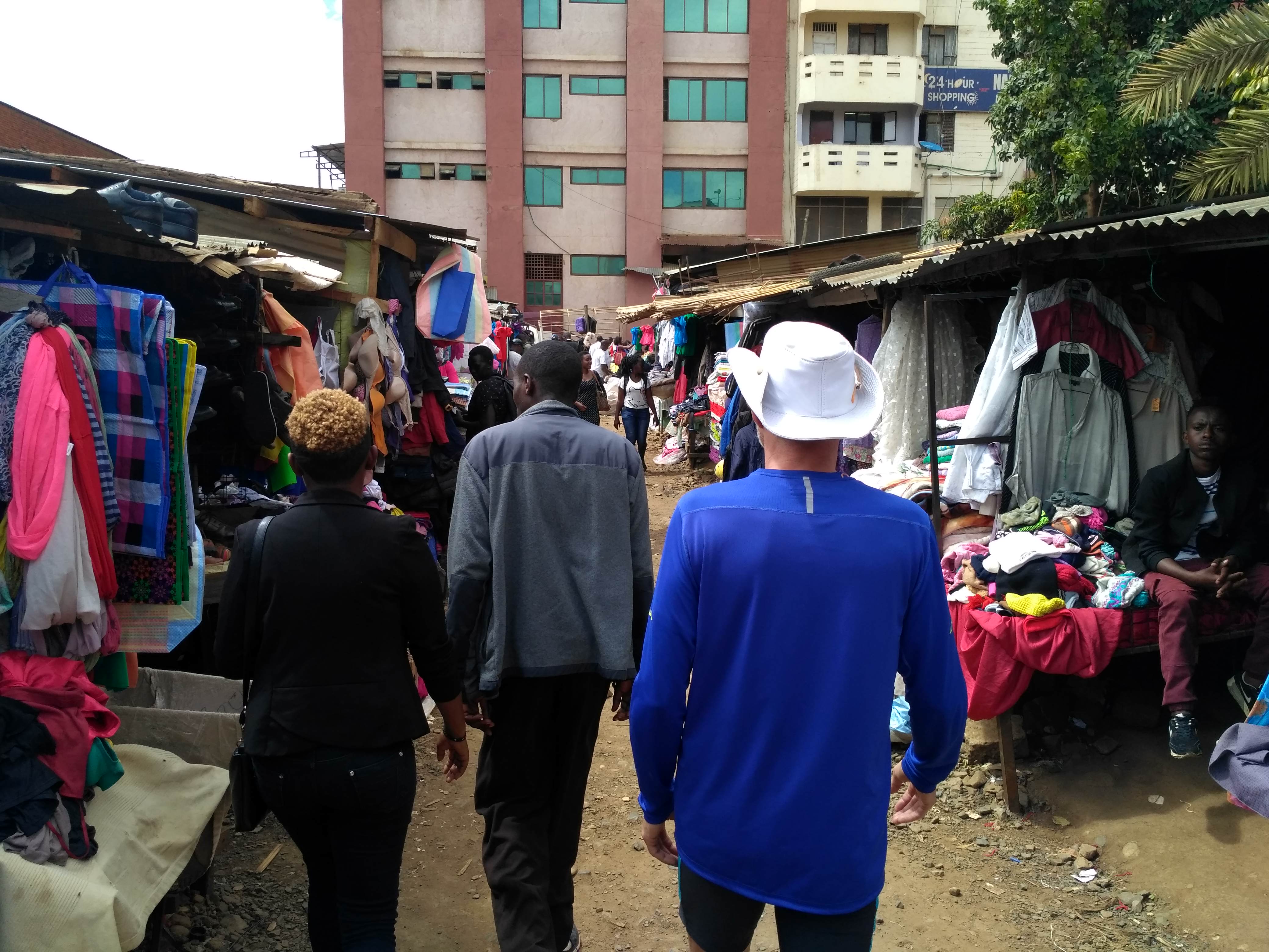 Po wyjściu z restauracji poszliśmy jeszcze do supermarketu. Chciałam kupić uji, które gotował nam Errol. To kupione w Iten mniej mi smakowało. Udało się dostać właściwą mąkę. Potem przespacerowaliśmy się jeszcze po zatłoczonych uliczkach miasta. Szukałam dla siebie lekkich, przewiewnych spodni na nasz późniejszy pobyt na Lamu. Niestety łatwiej tu o gruby polar, czy kurtkę z kożuchem niż o płócienne, lekkie spodnie.