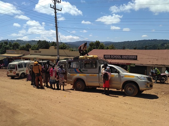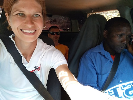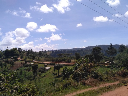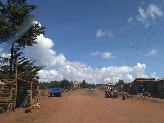 Przeszliśmy się chwilę po tej miejscowości. Myślę, że tu widok białych nadal jest rzadkością. Wioska jest ładnie położona, pośród zielonych zboczy. W dole leży las deszczowy, przez który też jechaliśmy, w oddali widać było góry. Odsapnęliśmy trochę i zaczęliśmy szukać auta na powrót. Byliśmy pewni, że nie chcemy już jechać matatu, tylko zapłacić więcej, nawet dużo więcej i mieć prywatny przejazd. Jeden z kierowców stojących na placu zaoferował nam pomoc i dość szybko znalazł innego chłopaka, który po negocjacjach za 23 usd zgodził się zabrać nas do Iten. Miał na imię Jonathan, jechał jak szalony jakimiś skrótami, po krętych i wąskich drogach. Śmiał się ze mnie, gdy kilka razy bezwiednie wydałam z siebie okrzyk przerażenia, będąc pewna, że zaraz się zderzymy z autem z naprzeciwka. Mimo wszystko to była dobra decyzja, bo w Iten byliśmy po niespełna półtorej godzinie. Z radością zareagowaliśmy na asfalt, który pojawił się przed wjazdem do naszego miasta i na oznaki bardziej zaawansowanej cywilizacji.