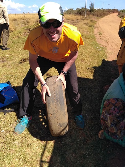 Dziś zasmakowaliśmy prawdziwej Afryki. Lubię palcem po mapie wyznaczać sobie trasy wycieczek i ustalać plan działania. Mam to chyba po moim tacie. Tylko, że po dzisiejszym dniu wiem już, aż za dobrze, że Afryka rządzi się swoimi prawami. A zwłaszcza podróżowanie po niej… Upatrzyłam sobie na mapie miejscowość w rejonie Marakwet o nazwie Tot. Jest to region wysokich gór, z wzniesieniami dochodzącymi prawie do 3400 mnpm. Z mapy wynikało, że odległość do tej miejscowości z Iten jest porównywalna jak do Eldoret. Założyłam więc, że droga tam zajmie nam około godziny, drugie tyle na powrót, tam chciałam posiedzieć ze 3h, może wejść na jakiś niższy szczyt i na 16 spokojnie wrócić do Iten do St. Patrick’s School na umówione spotkanie z coachem Ianem. Plan zdawał się być idealny. Nastawiłam więc budzik na rano, zjedliśmy śniadanie, spakowaliśmy plecak, zabraliśmy kurtki. Pamiętaliśmy jak zimno było nam rok temu w bazie na Mt Kenya, na wysokości 3333 mnpm. O 9 rano byliśmy już na stacji matatu. Znaleźliśmy szybko auto, które jechało w pożądanym kierunku. Wcześniej jakiś chłopak mówił, że to daleka droga i proponował nam wynajęcie prywatnego auta za 50 usd. Uznaliśmy, że to zdecydowanie za dużo, nawet nie wzięliśmy takiej kasy ze sobą. Facet w matatu, a właściwie swego rodzaju pickupie dał nam cenę 5 usd za nas dwoje. Auto nie miało siedzeń, tylko ławki po obu bokach. Zapełniło się w miarę szybko. Jeden z pasażerów także stwierdził, że wybieramy się w daleką podróż. Powoli zaczęliśmy wątpić. Nawet wysiedliśmy z auta, ale wtedy wszyscy zaczęli nas przekonywać, że damy radę, że jak dojedziemy do Kapsowar, leżącego w połowie drogi, to tam pomogą załatwić nam prywatny samochód do Tot. Policzyliśmy szybko kasę, uznaliśmy że nam wystarczy i ruszyliśmy. Początkowo było zabawnie. W środku siedziało nas 12 osób więc każdy miał jako taką wygodę. Jednak matatu i tego typu pojazdy mają to do siebie, że zabierają każdego chce stoi przy drodze, nie bacząc na pojemność auta. Tak więc po przejechaniu może 2 km było nas już w środku 16 osób i 3 dzieci, przy wyraźnym napisie na aucie – 14 pasażerów. Mało tego, na dachu została przymocowana żywa owca… Ruszyliśmy dalej, co chwilę się zatrzymując, by zabrać kolejne osoby lub kogoś wysadzić. Za każdym razem, gdy wydawało mi się, że to już szczyt możliwości pojemnościowych, auto się zatrzymywało i wsiadał kolejny pasażer. W krytycznym momencie jechało nas 20 osób. Dwoje ludzi jechało na zewnątrz trzymając się drzwi, jeden siedział na dachu koło owcy.