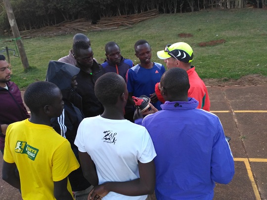 Meshack czekał na nas punktualnie pod szkołą. Miał jakiś pakunek, powiedział, że to prezent, dla yacoola. Ale go zaskoczył! Dał mu oryginalną kurtkę reprezentacji Kenii, model z ubiegłego sezonu. Yacool był zachwycony. Zwłaszcza, że od samego początku jak tu jesteśmy bezskutecznie staramy się dostać takie rzeczy i wiemy jak o nie trudno. Meshack nie chciał od nas kasy za kurtkę. Po chwili na swoim motorze przyjechał Ian. Jeszcze raz nas przeprosił, że nie zastaliśmy go wcześniej. Poszliśmy na boisko i zaczęliśmy trening. Wszystko od początku, koordynacja w statyce, marszu i truchcie. Meshack pokazywał razem ze mną, Ian próbował. Szybko łapał ćwiczenia i wyczuwał różnice między tymi, które robił do tej pory. Yacool uświadomił go, że to co mu pokazał Australijczyk, i co my widzieliśmy na ich ostatnim treningu, to nie były żadne australijskie techniki, tylko typowe ćwiczenia z etiopskich rozgrzewek, z którymi filmików jest w necie pełno. Zaskoczyło go to.