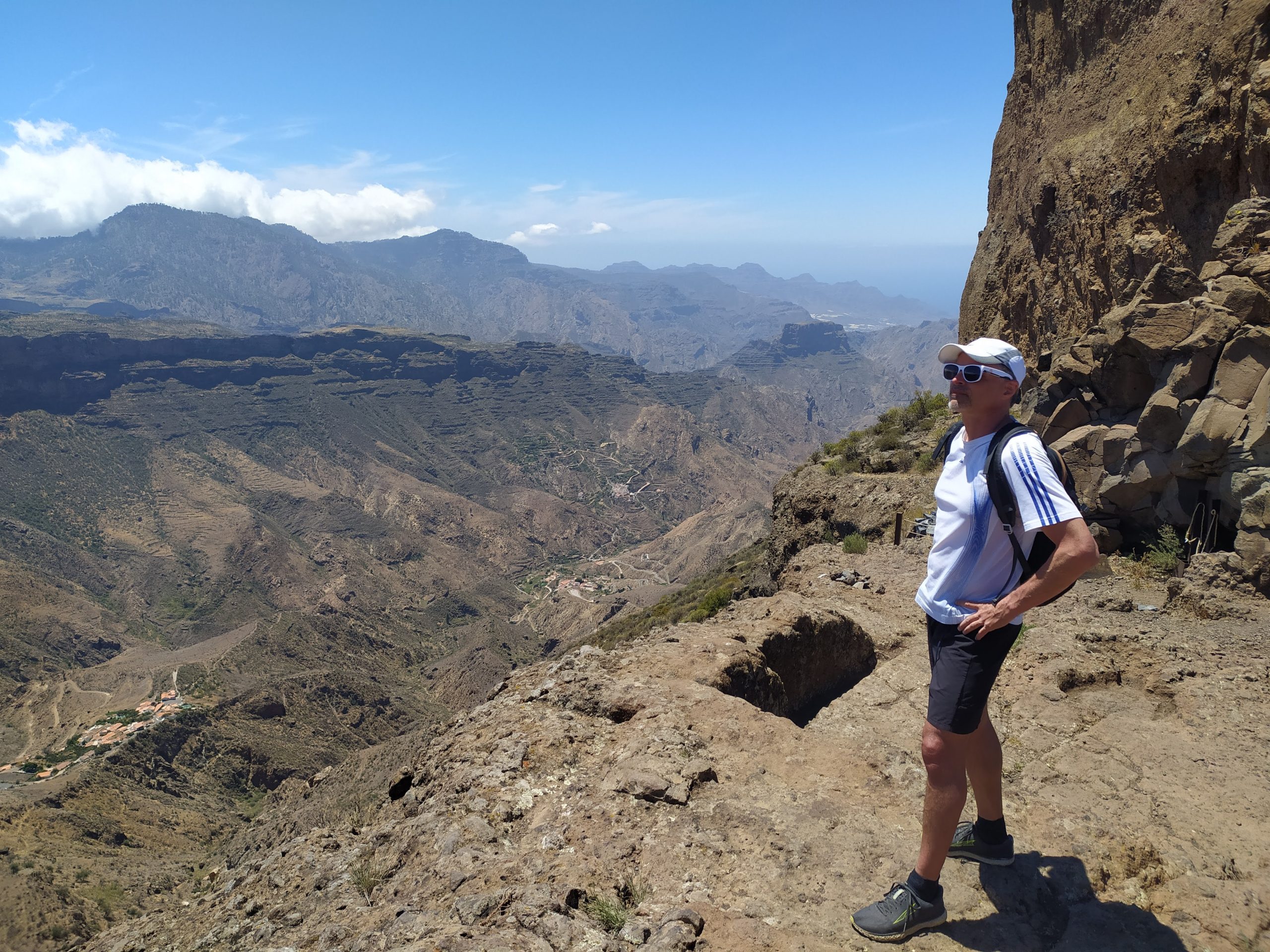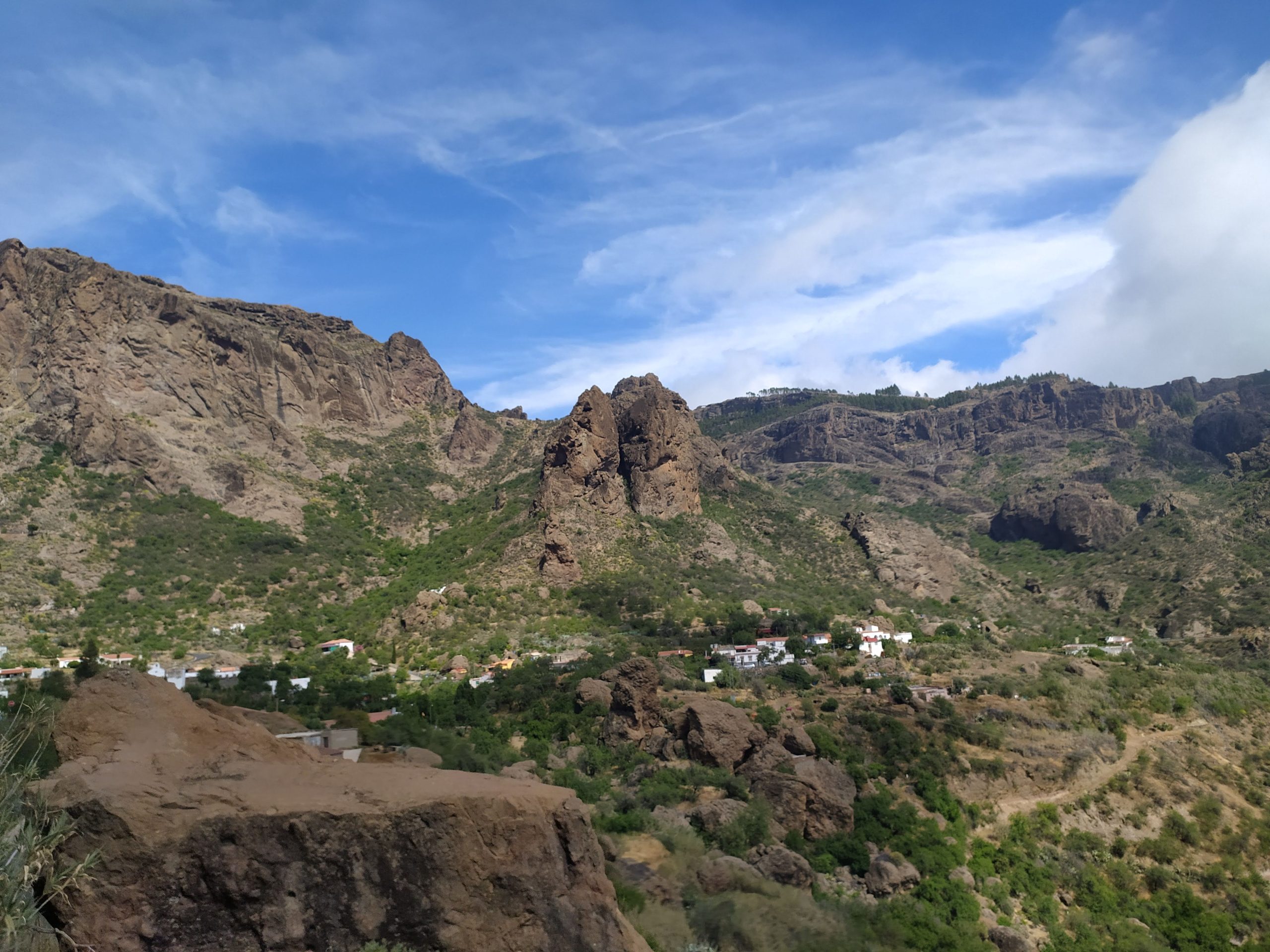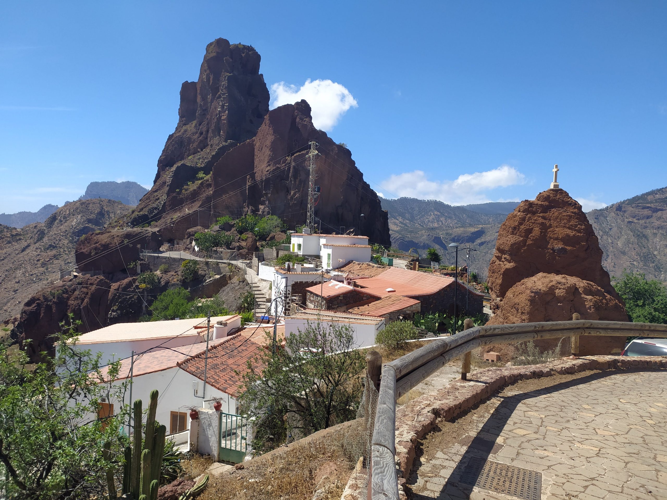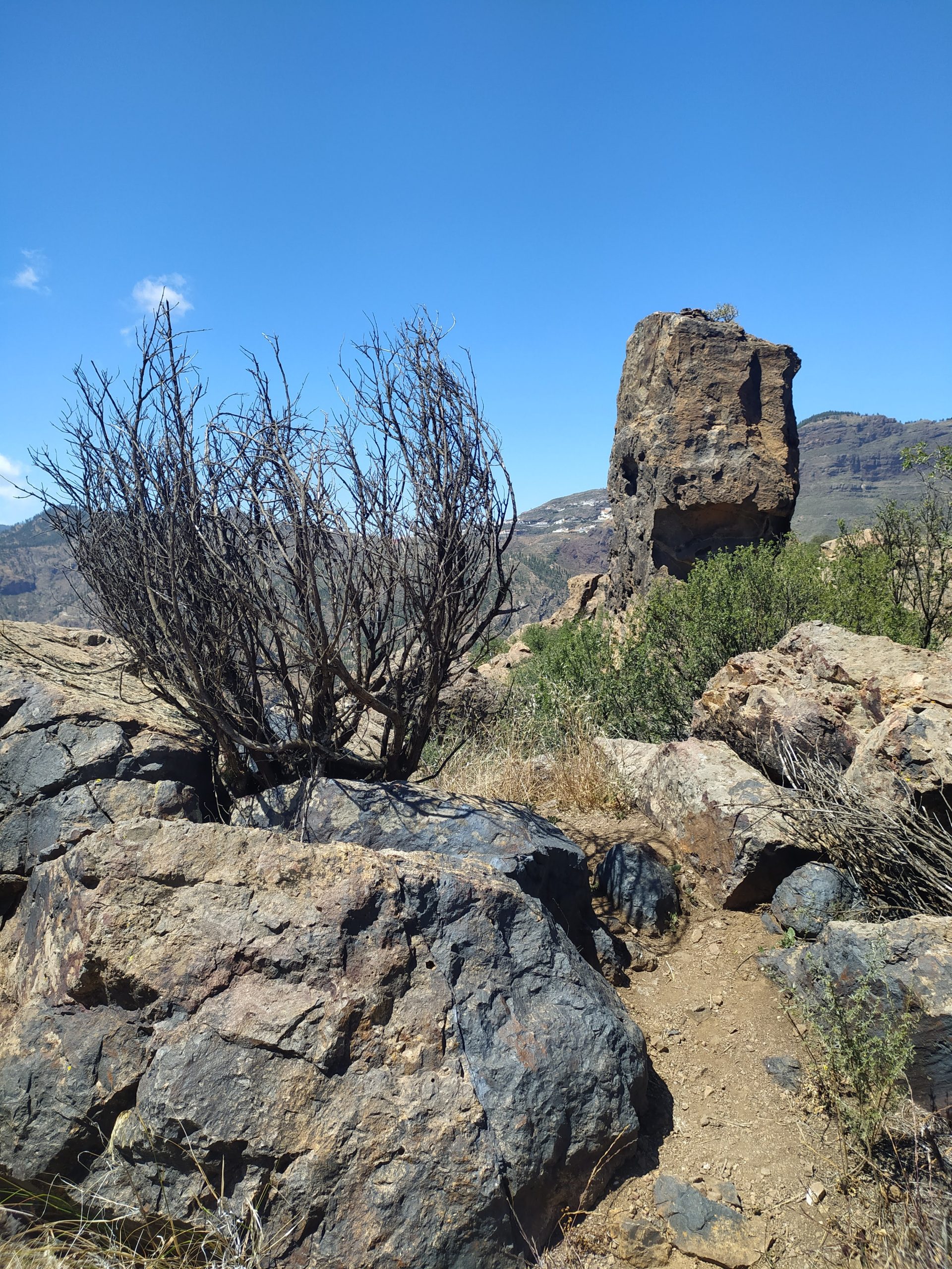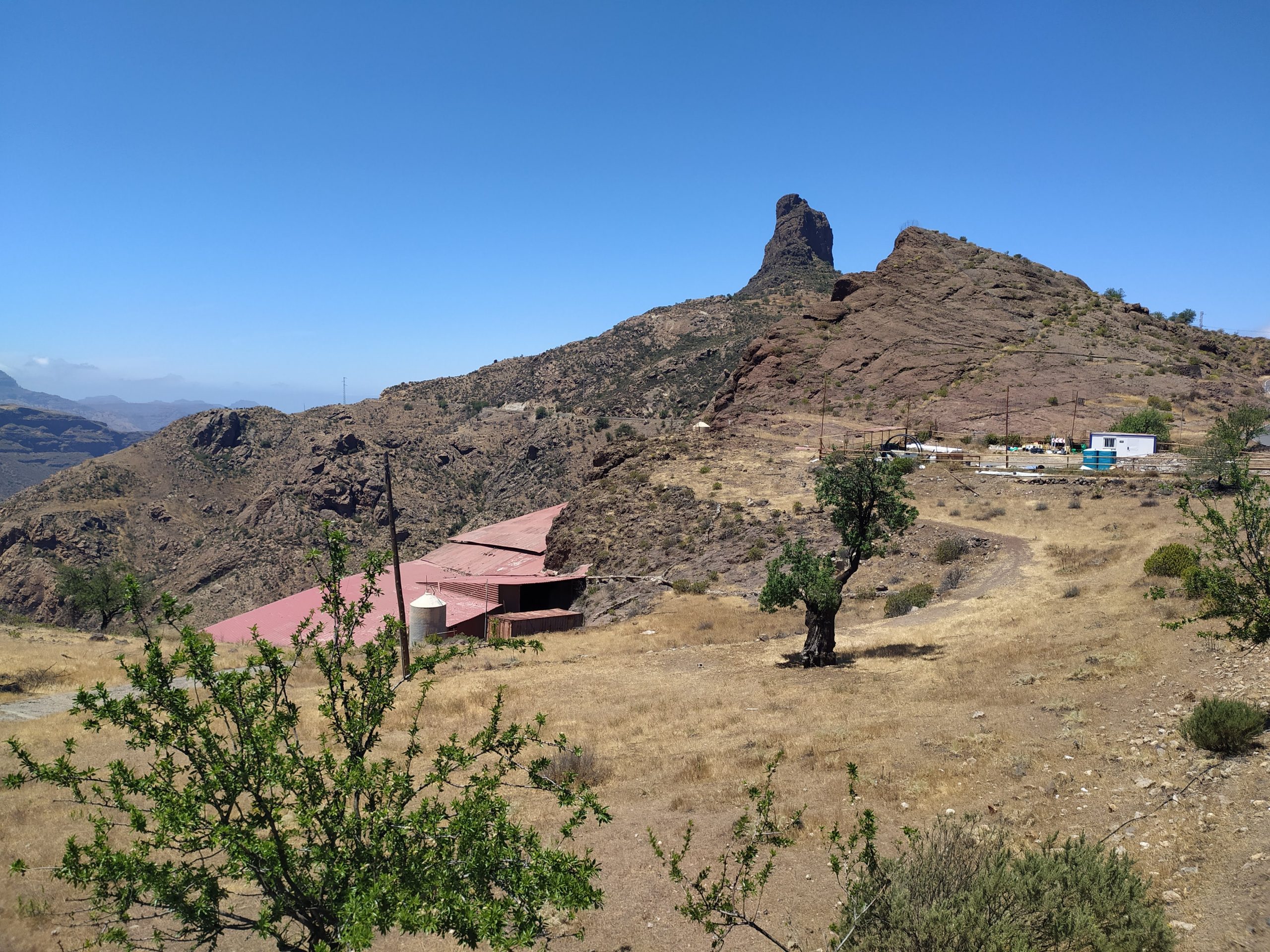 Widoki z góry super! Jak na dłoni widać było cele naszych wcześniejszych wypraw, Roque Nublo i Pico de las Nieves. Zbocza gór poprzecinane były zygzakami dróg i szlaków. Z pewnością jest tu mnóstwo dróg do przejścia. Choć przyjemniej by było w mniejszym upale niż dziś.