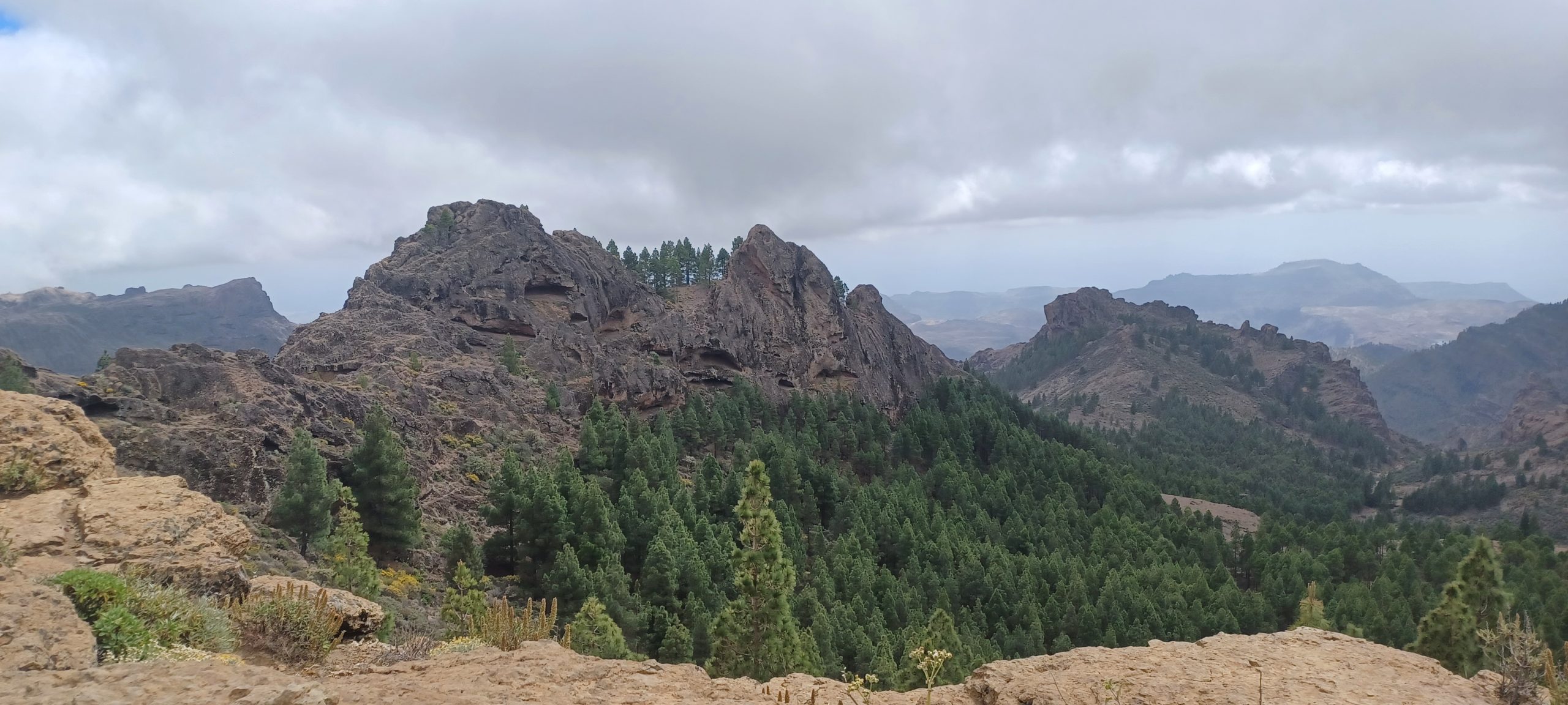 Po śniadaniu wyruszyliśmy wgłąb wyspy. Na niebie było trochę chmur. Nie przeszkadzało nam to, przynajmniej skóra trochę odpocznie. Celem było dotarcie pod słynną skałę Roque Nublo. Jadąc w interior co chwila zatrzymywaliśmy się na różnych punktach widokowych. Na Gran Canarii, podobnie jak na Teneryfie wystarczy przejechać dosłownie 20 km, by znad morza znaleźć się w górach i to całkiem wysokich.