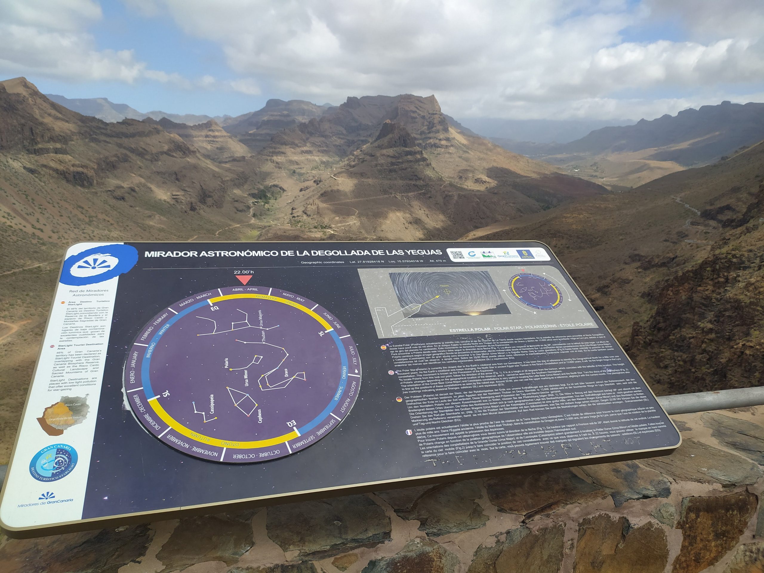 Super widoki po drodze. Stanęliśmy na punkcie, który jest przygotowany do obserwacji nocnego nieba i gwiazd. Znajdował się tam okrągły diagram z narysowanymi konstelacjami gwiazd. Wystarczy ustawić na miesiąc, który aktualnie jest i będąc w tym miejscu o 22 można sobie rozszyfrować jakie gwiazdy się widzi. Była też strzałka wskazująca, gdzie można dostrzec gwiazdę polarną.