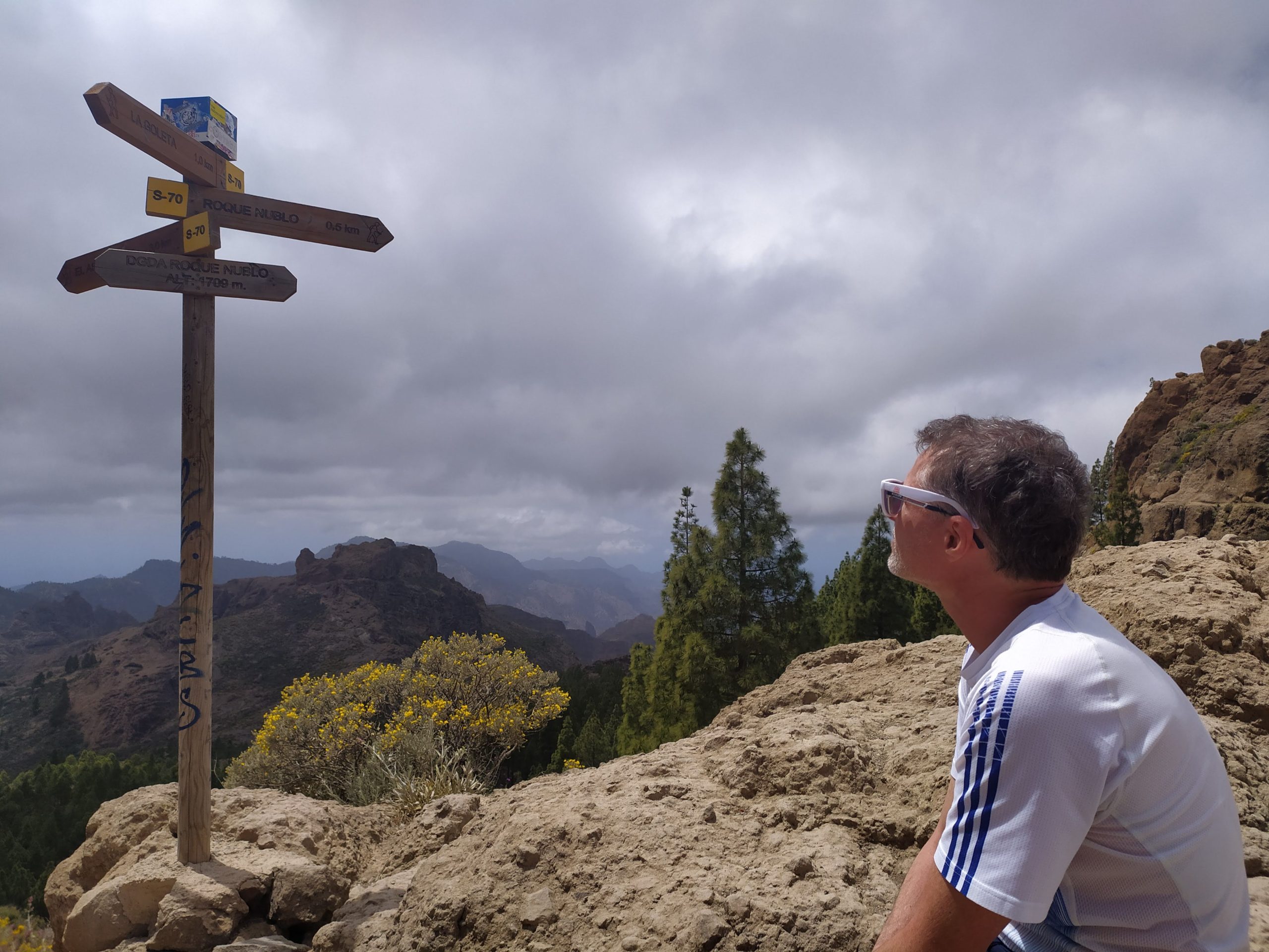 Pojechaliśmy jeszcze stanąć na najwyższej górze Gran Canarii, Pico de las Nieves – 1949 m n.p.m. Długo siedzieliśmy na szczycie licząc, że wiatr przegoni chmury, ale po około godzinie zrezygnowaliśmy i inną drogą zjechaliśmy na wschód wyspy.