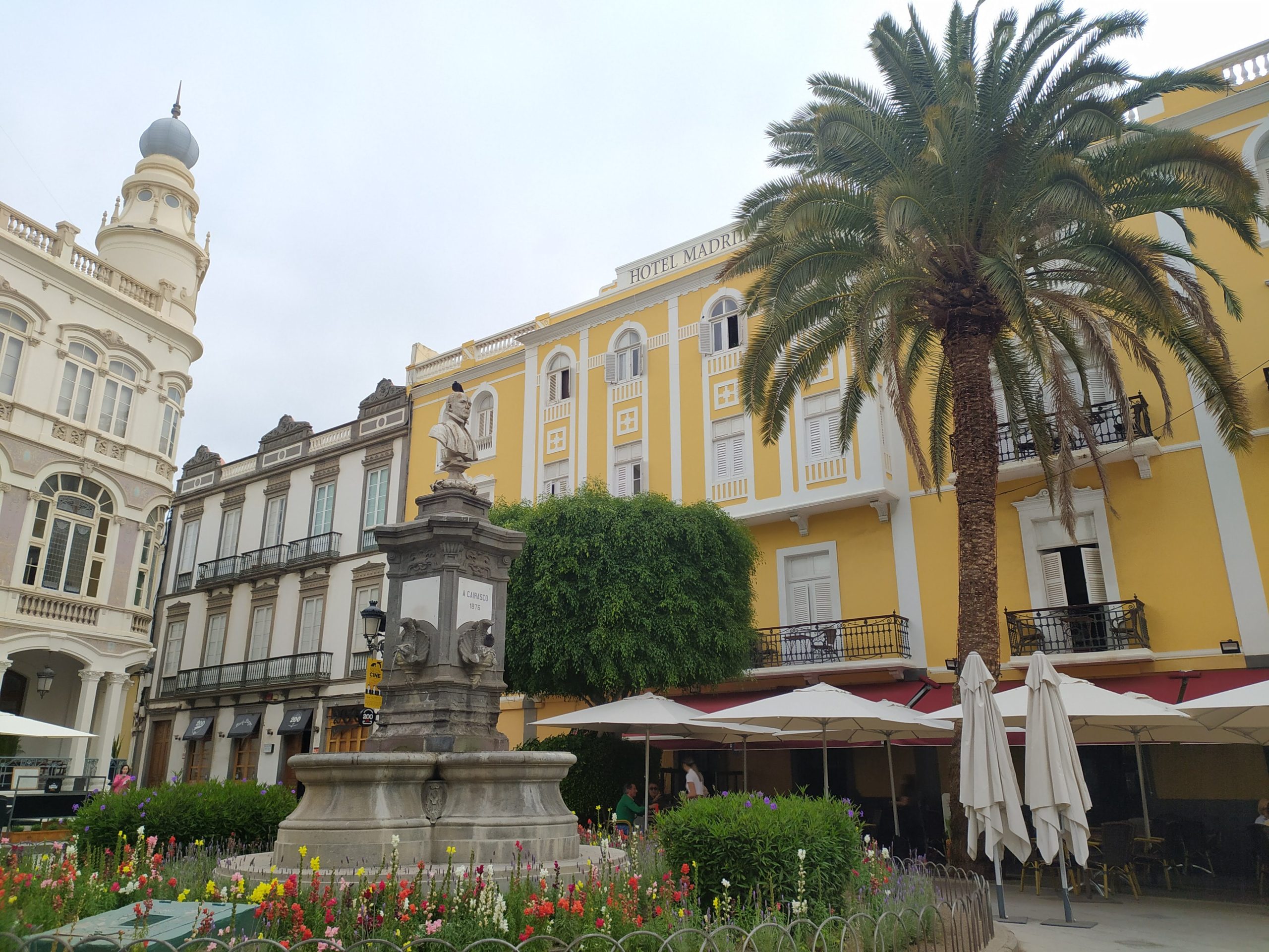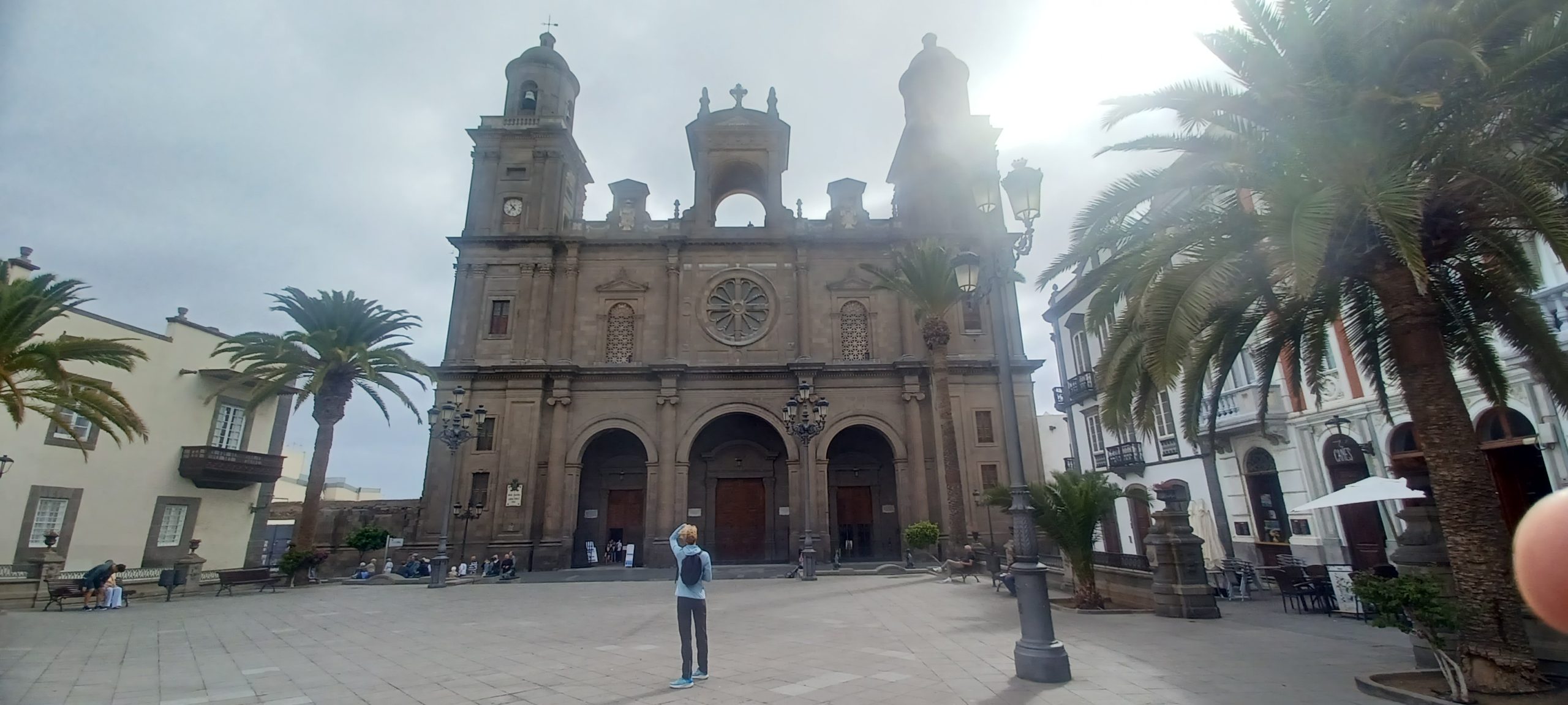 W skrócie, z Majorki na Gran Canarię lecieliśmy niecałe 3h. Szybki odbiór auta i już przed 9 przemierzaliśmy wyspę. Pogoda była pochmurna i wietrzna, więc z odpoczynku na plaży nici, postanowiliśmy pozwiedzać stolicę, Las Palmas de Gran Canaria. Zaczęliśmy od kawy i bagietki w lokalnej kawiarence. Spacer najpierw główną ulicą handlową – Calle de Triana ze sklepami znanych marek. O tej porze butiki dopiero budziły się do życia. Potem zabytkowa dzielnica Vequeta, z domem Kolumba i Katedrą św. Anny, liczne place, parki, pomniki. W informacji turystycznej wzięliśmy mapkę wyspy i kilku miast, by łatwiej się poruszać i planować.