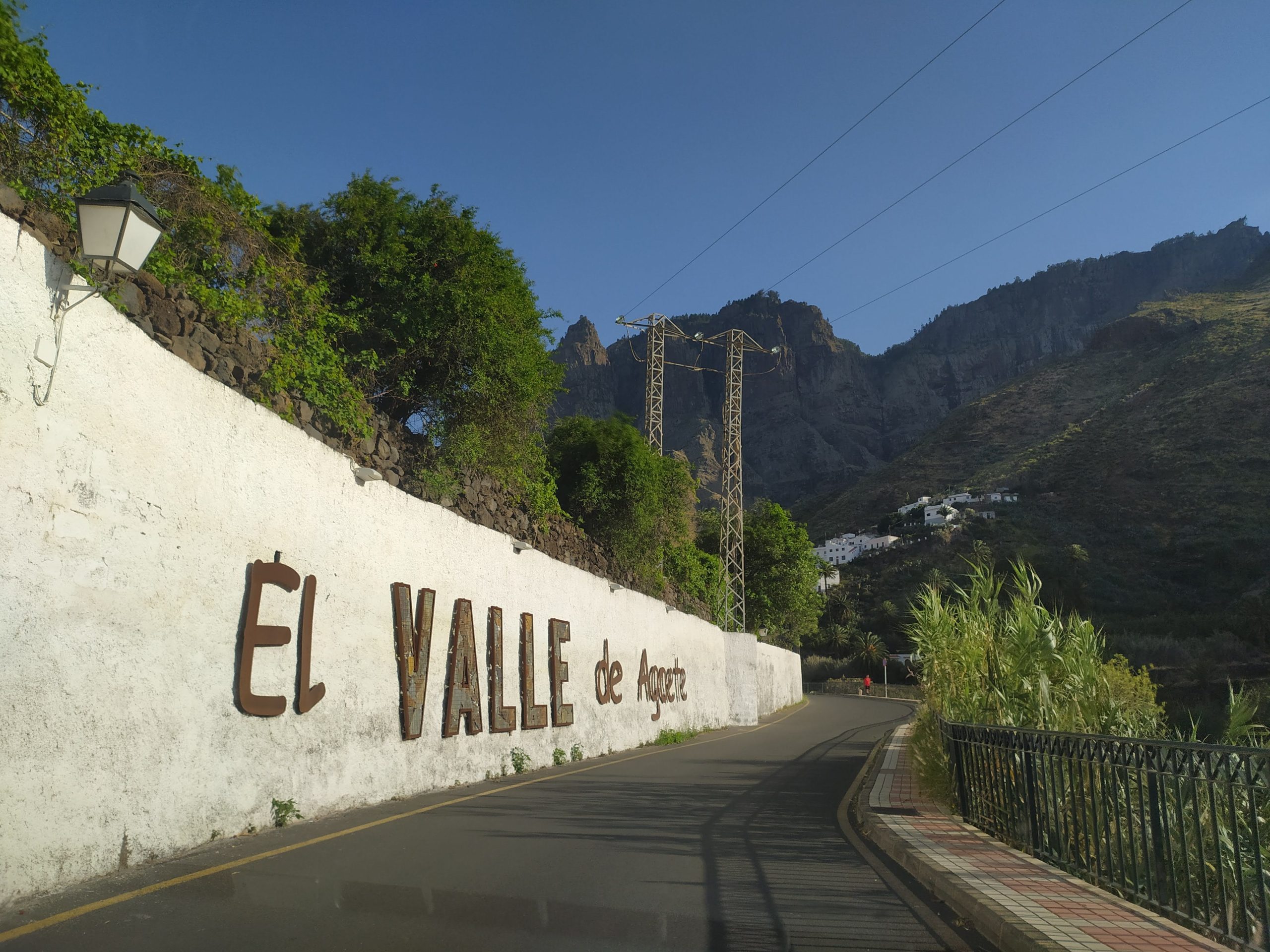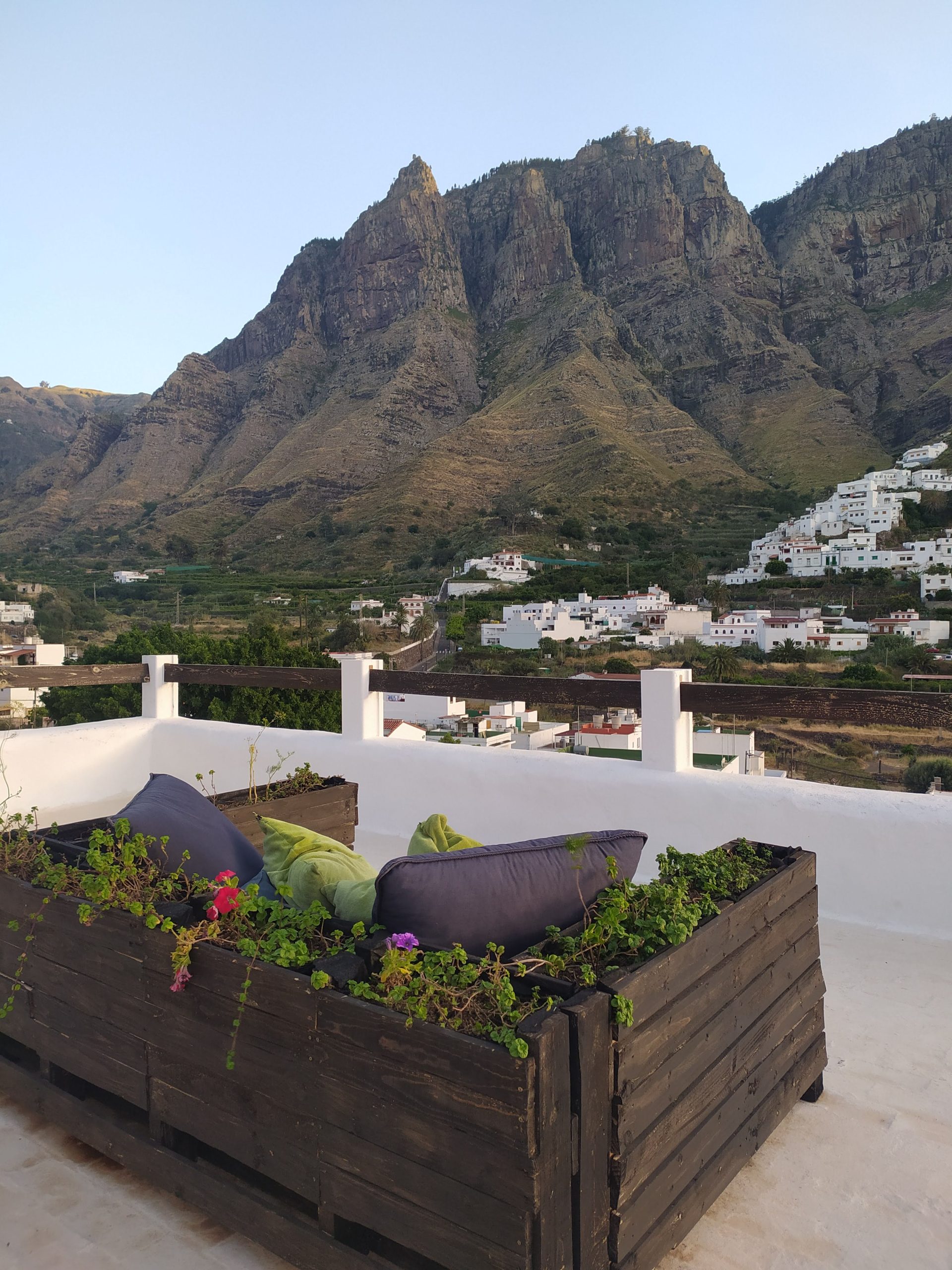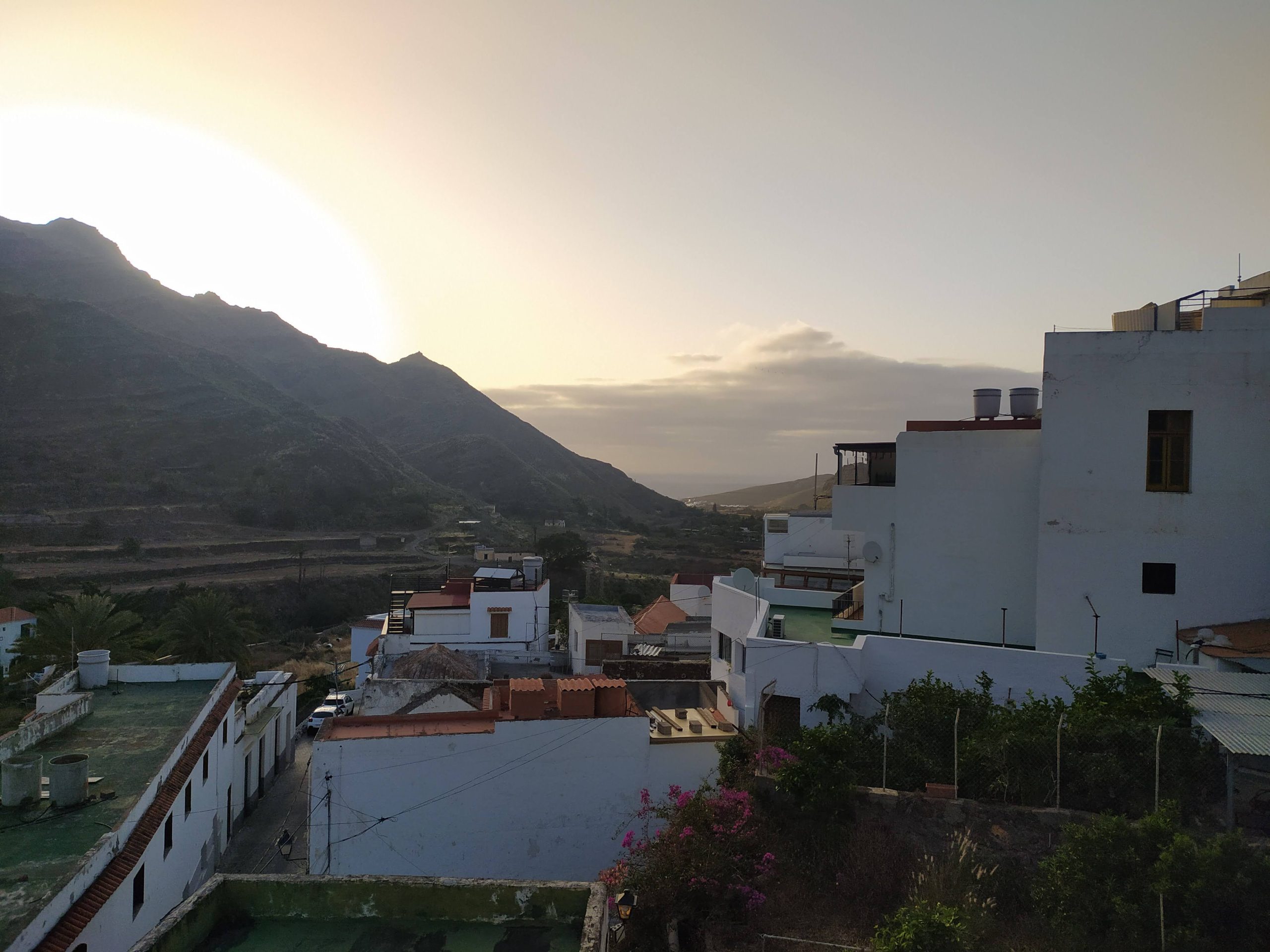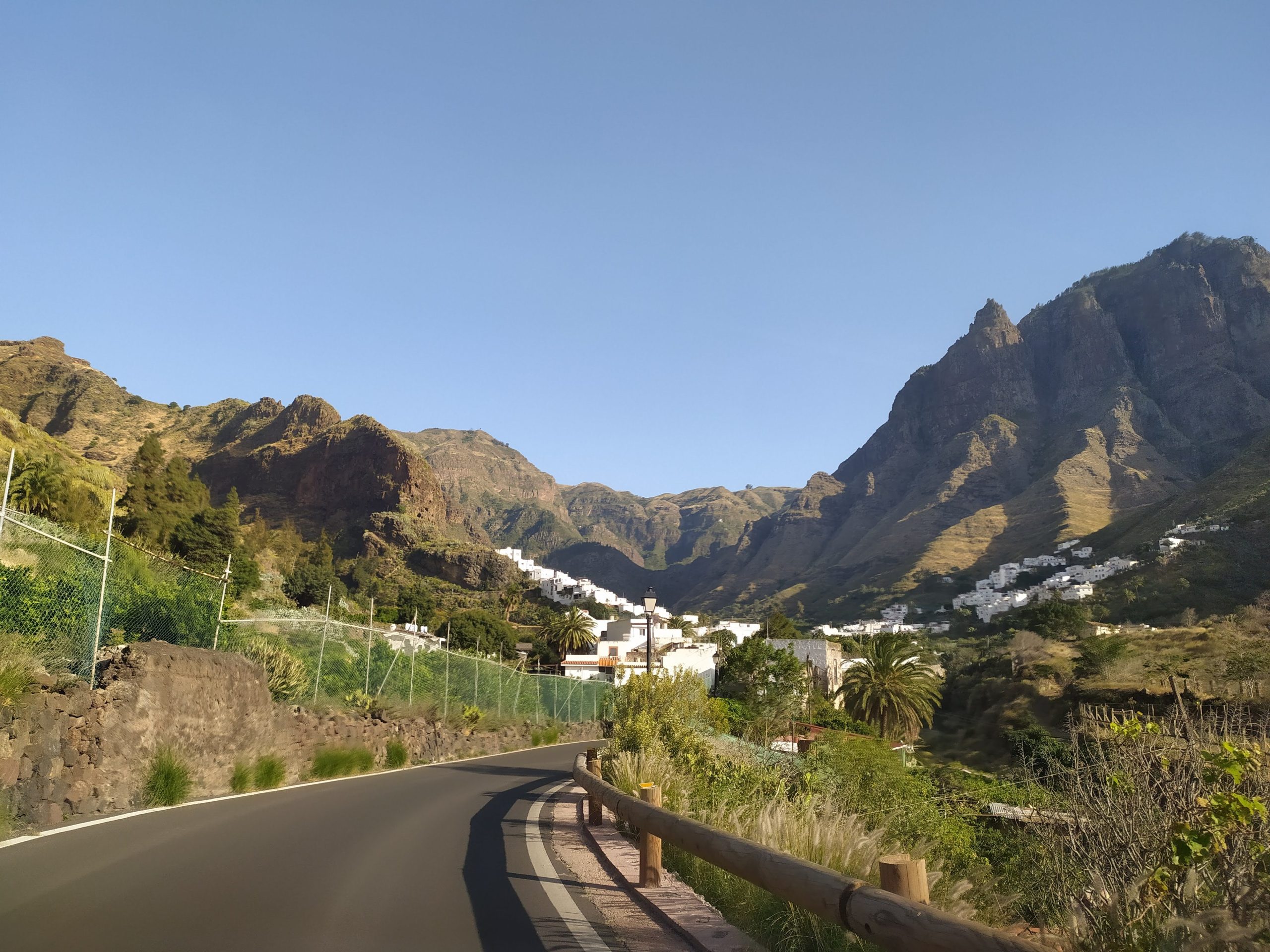 Szybkie zakupy w spożywczym i bardzo wąską drogą, przez małe placę i niemal ocierając się o drzwi wejściowe do domów ruszyliśmy do San Pedro w Dolinie Agaete. Przepiękne widoki na góry i białe domki na stokach.