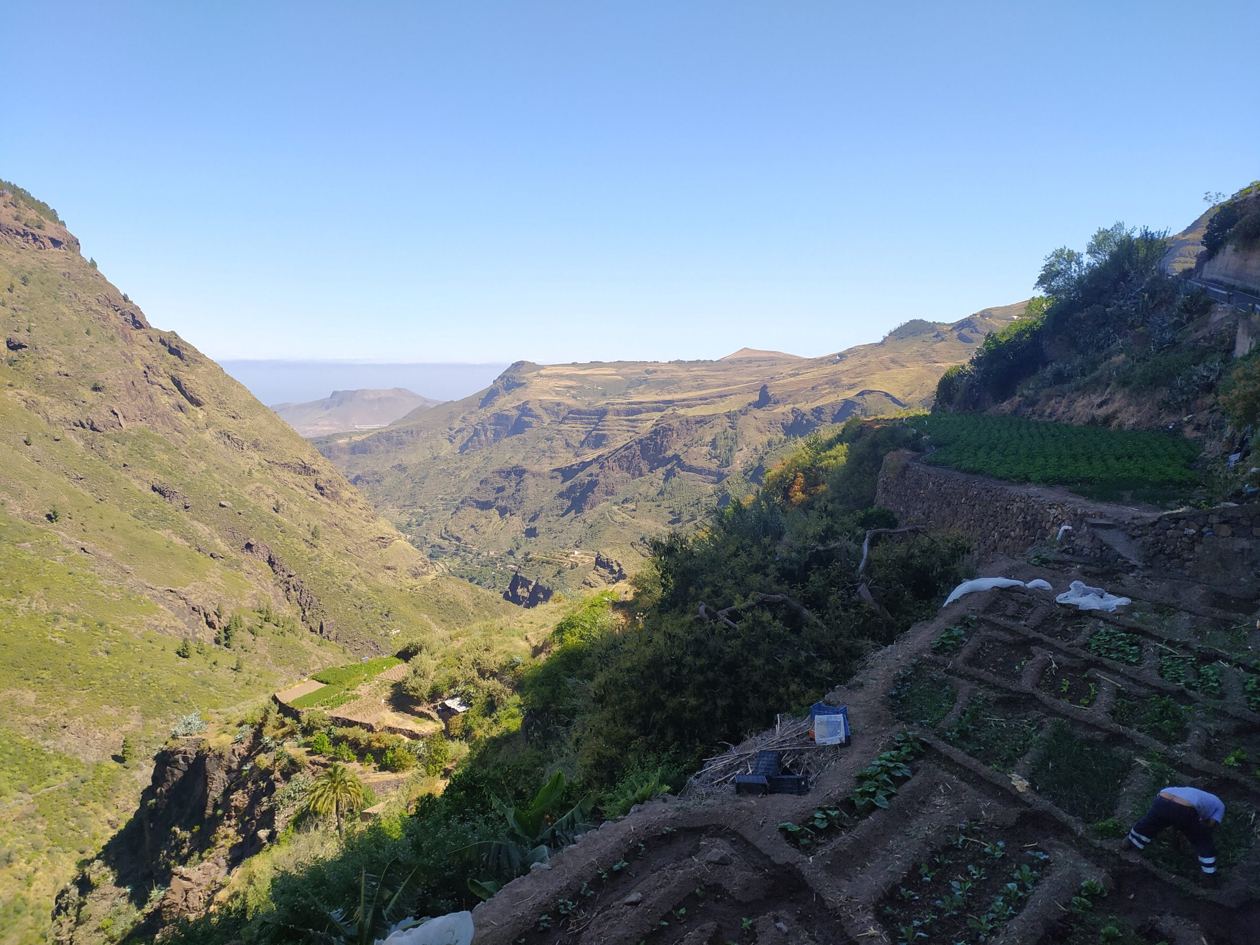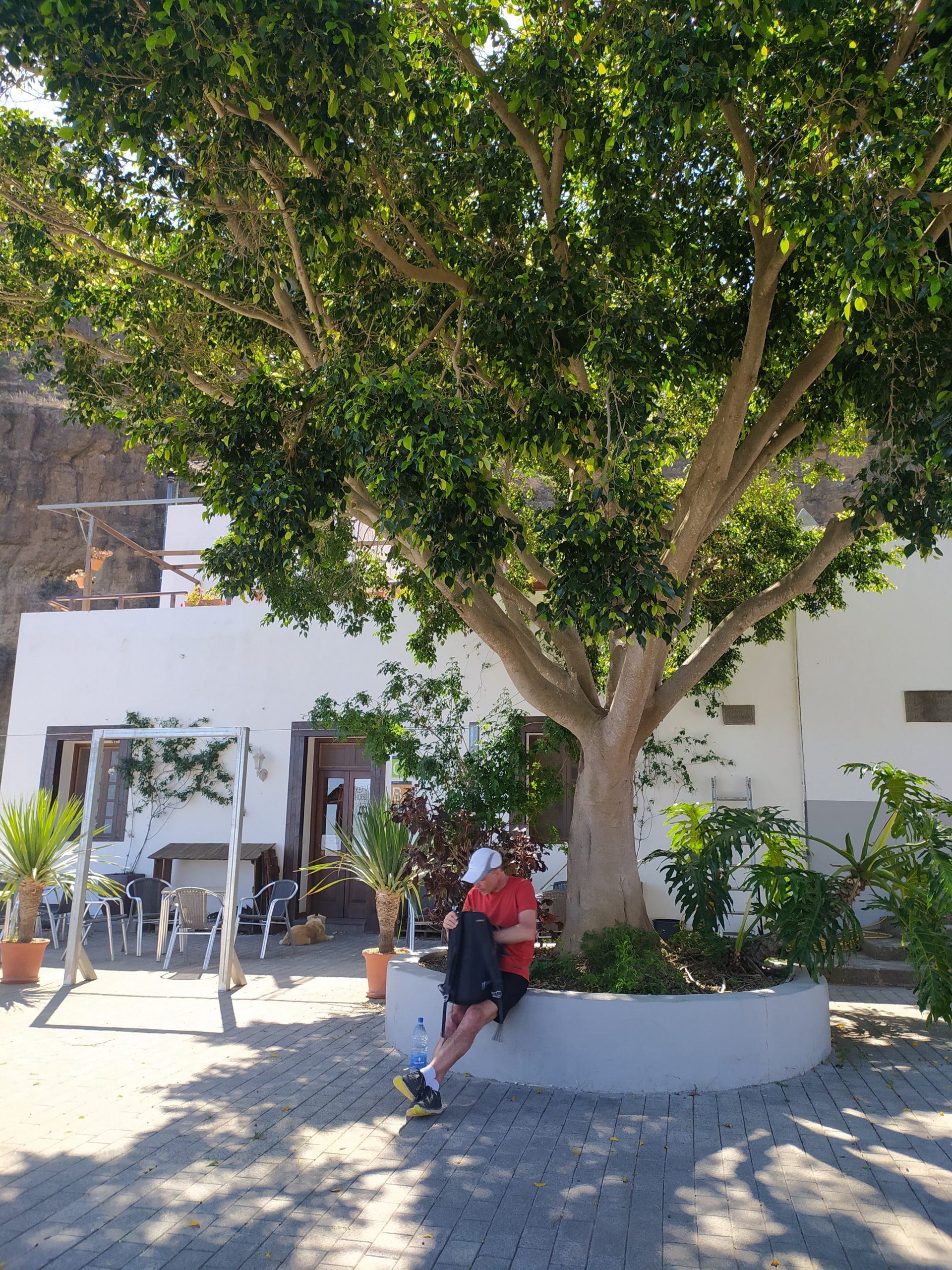 Dotarliśmy do domu późnym popołudniem mega zmęczeni. Nasza gospodyni poczęstowała nas jeszcze talerzem zupy z cukinii, ugotowała jej wielki gar. Bardzo smaczna. Porozmawialiśmy o podróżach. Cały czas byłam przekonana, że na Kanarach cały rok panuje w miarę stabilna i łagodna pogoda. Okazuje się, że tu też doświadczają ponad 40 st upałów, najgoręcej jest w sierpniu i wrześniu. Natomiast bardzo przyjemnie, rześko w nocy i ciepło w dzień jest tu od listopada do stycznia. Czasem zdarza się deszcz, z którego mieszkańcy się bardzo cieszą, ale prawie zawsze na wyspie znajdzie się też miejsce, gdzie w tym samym czasie świeci słońce. Alex pokazał mi zdjęcia ogromnego pożaru widocznego z ich tarasu, który szalał w dolinie kilka lat temu. Dobrze, że nie dotarł do ich wioski.