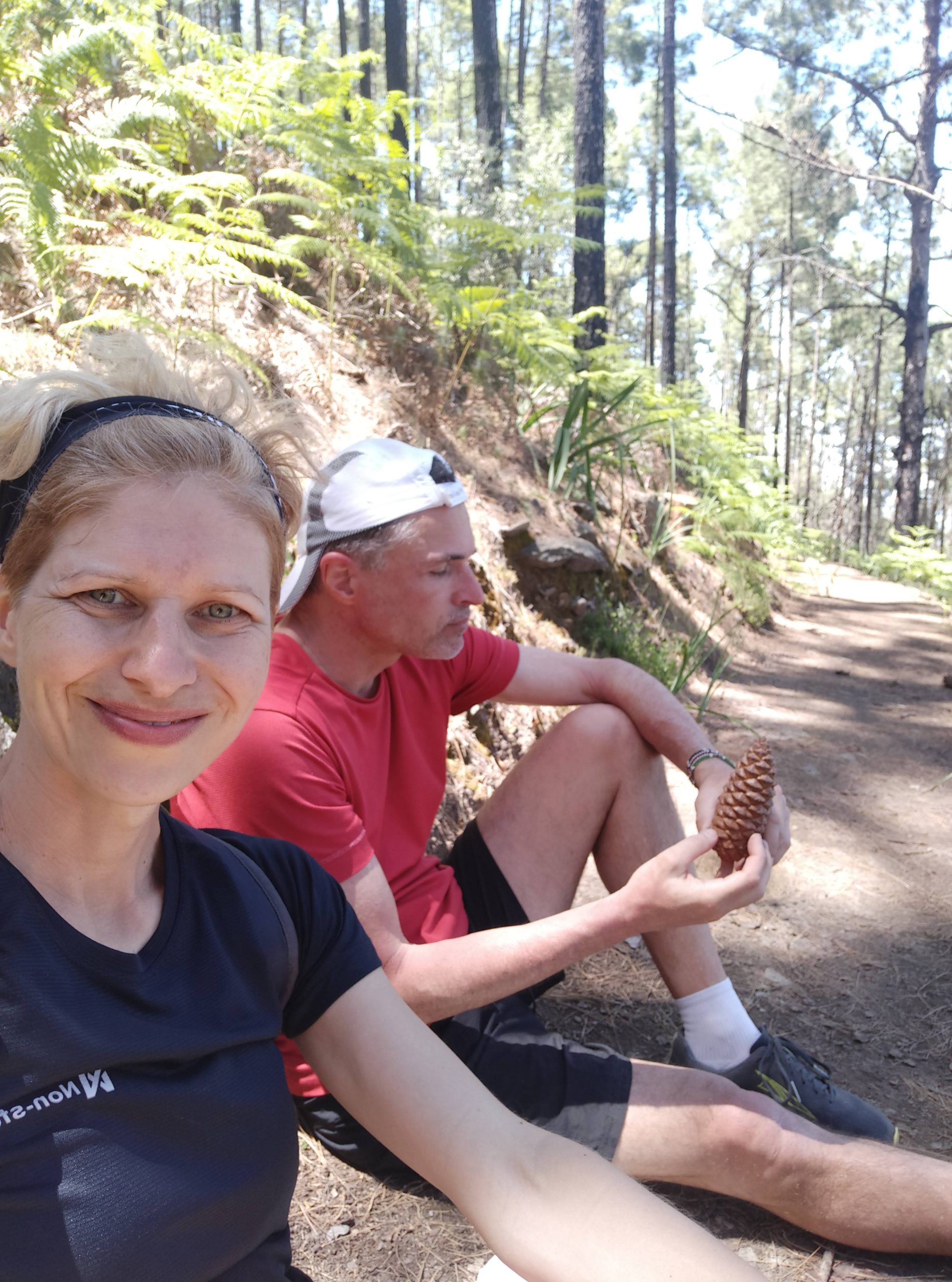 Ale nie ma tego złego … Yacool po drodze znalazł szyszki, których nasiona w domu będzie chciał sobie posadzić. Z szyszki z Teneryfy ma już małą siewkę, może i te mu wyrosną. 😉