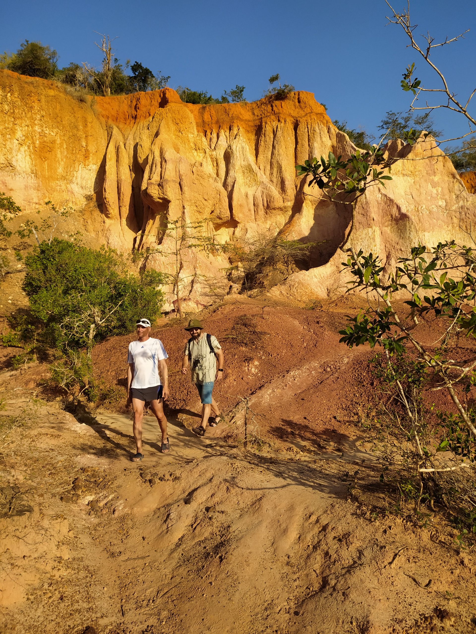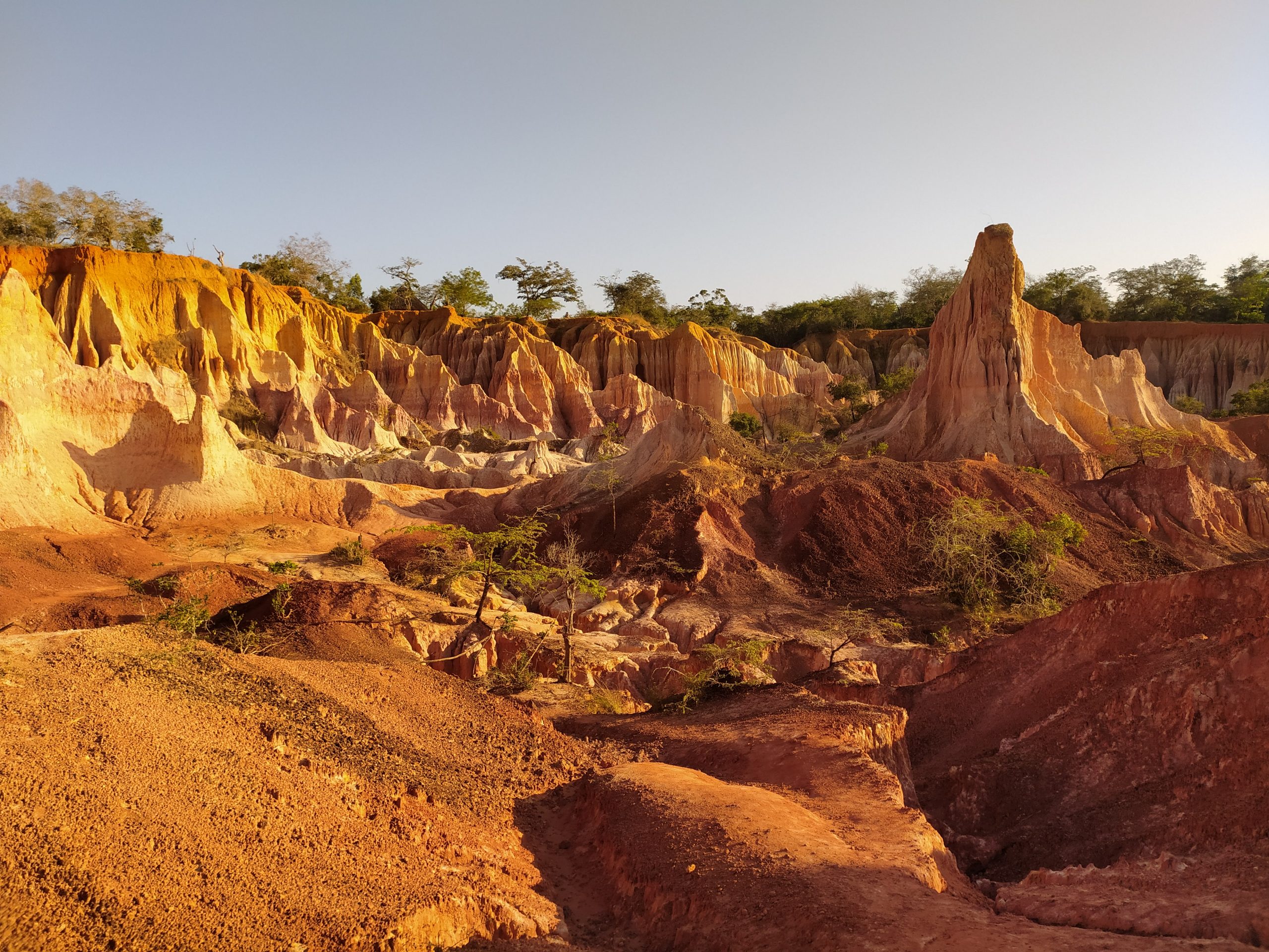 Ruszyliśmy więc w dalszą drogę. Z Malindi do Marafa, gdzie jest ten cud geologiczny jest około 60 km. Nasz kierowca był zaskoczony, że większość drogi stanowi już asfalt. Od kilku lat drogi w Kenii budują Chińczycy, postęp widać niemal z tygodnia na tydzień. Po drodze przejeżdżaliśmy przez spory most na rzece Sabaki. Rzeka Athi, której dolne biegi zwane są Galana i Sabaki jest drugą pod względem długości rzeką w Kenii. Liczy 550 km. Przepływa przez parki narodowe Tsavo East i Tsavo West. Will powiedział, że po ostatnich miesiącach obfitych opadów rzeka wszystko niesie z sobą do oceanu. Ma kolor ciemno brązowy i tak też zanieczyszcza zatokę w Malindi.