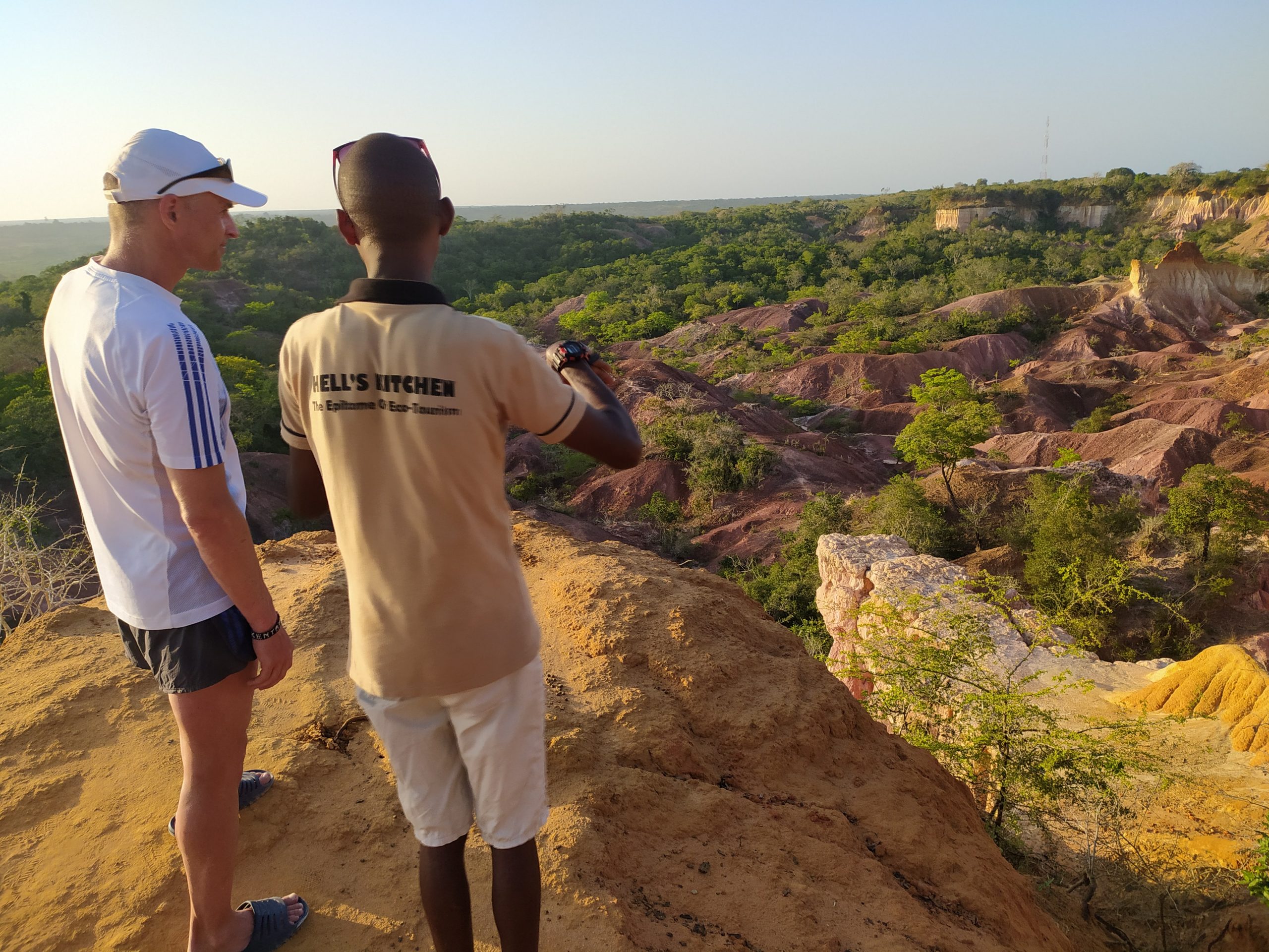 Po godzinnym spacerze poczekaliśmy na zachód słońca na szczycie kanionu. Było pięknie. Szybko zrobiło się ciemno. Wracaliśmy do Watamu mocno zatłoczoną drogą. Nasz kierowca jechał dość brawurowo. Przypomniały mi się czasy, gdy kilka lat temu podróżowaliśmy matatu między Narobi, a Eldoret. Na szczęście dowiózł nas bezkolizyjnie do domu. Byliśmy mocno zmęczeni. Ale zanim położyliśmy się spać poszłam jeszcze z Jankiem na pizzę, do włoskiej knajpy zaraz obok nas. Muszę przyznać, że można tu zjeść całkiem dobrą włoską pizzę.