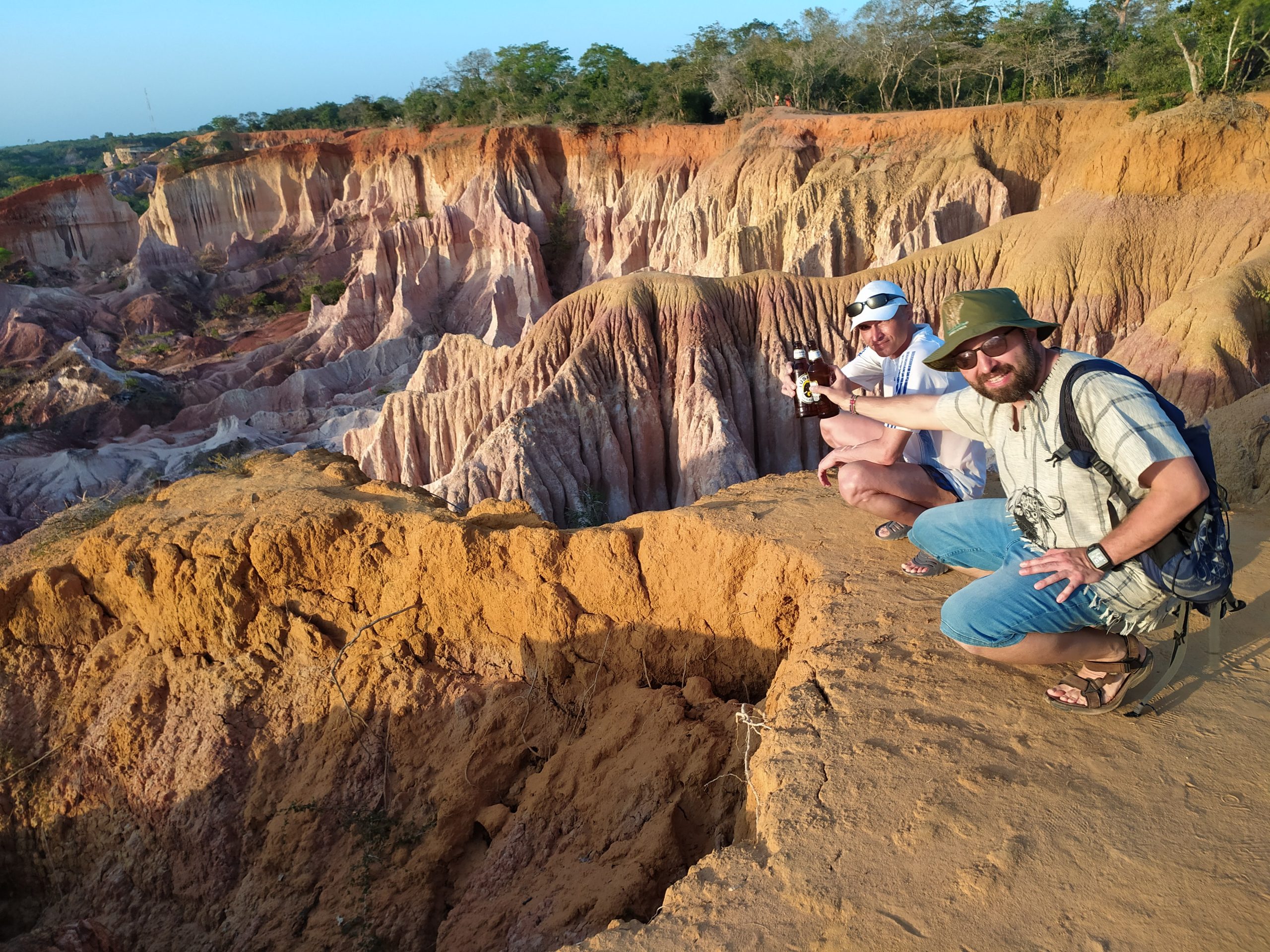 Malindi jest znacznie większe niż Watamu, pełne samochodów i motorków, głośne. Mimo to wydaje się przyjemniejsze w swym rozgardiaszu niż Eldoret. Czuć w nim klimat nadmorskiego kurortu. Po szybkim lunchu, pizzy i kawie niemal w biegu poszliśmy zobaczyć plażę i słynny pilar Vasco da Gama. Szczerze mówiąc, nic specjalnego. Plaża była pełna śmieci i morskich wodorostów naniesionych przez ocean. Faktycznie piasek mienił się na niej niczym złoto, ale ogólny syf potęgował nasze zniechęcenie do pozostania tam dłużej. Poza tym Will poganiał nas i stresował się, że nie zdążymy zwiedzić kanionu przed zachodem słońca.