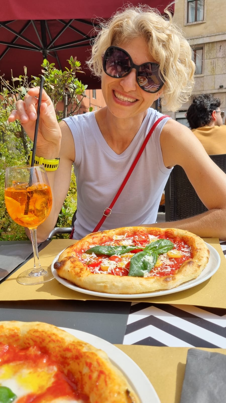Zmęczone sesją wciagnęłyśmy pizzę, popijając aperolem. Słońce grzało coraz mocniej. Pierwotny plan pieszego marszu nad morze zmieniłyśmy na jazdę autobusem. Podróż trwała niecałe pół godziny.