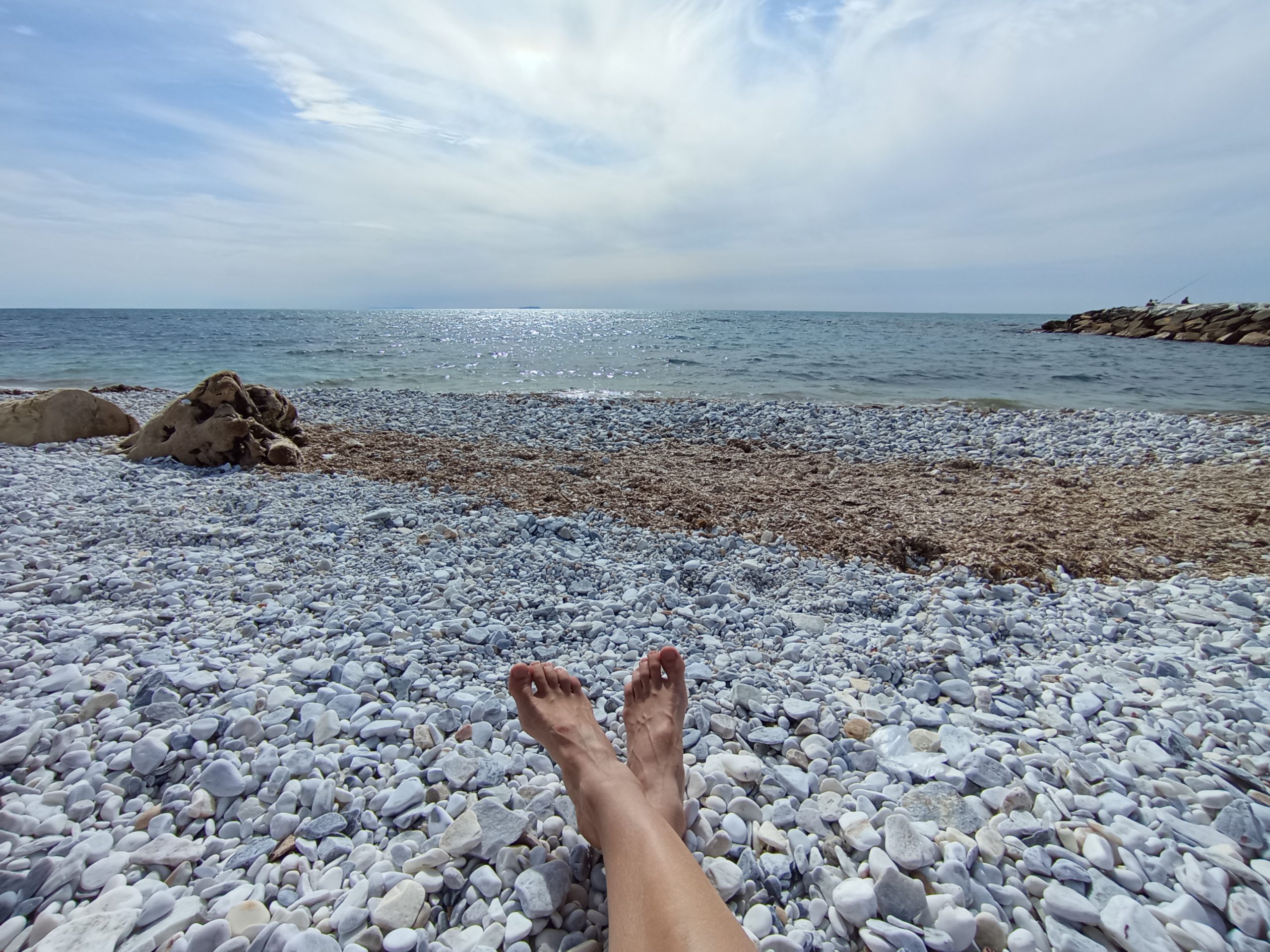 Rodzice byli tu dzień wcześniej, w niedzielę i mówili, że deptak był pełen ludzi. Teraz, w poniedziałek raptem pojedyncze osoby leżały na kamienistej plaży i spacerowały po bulwarze. Cisza i spokój.