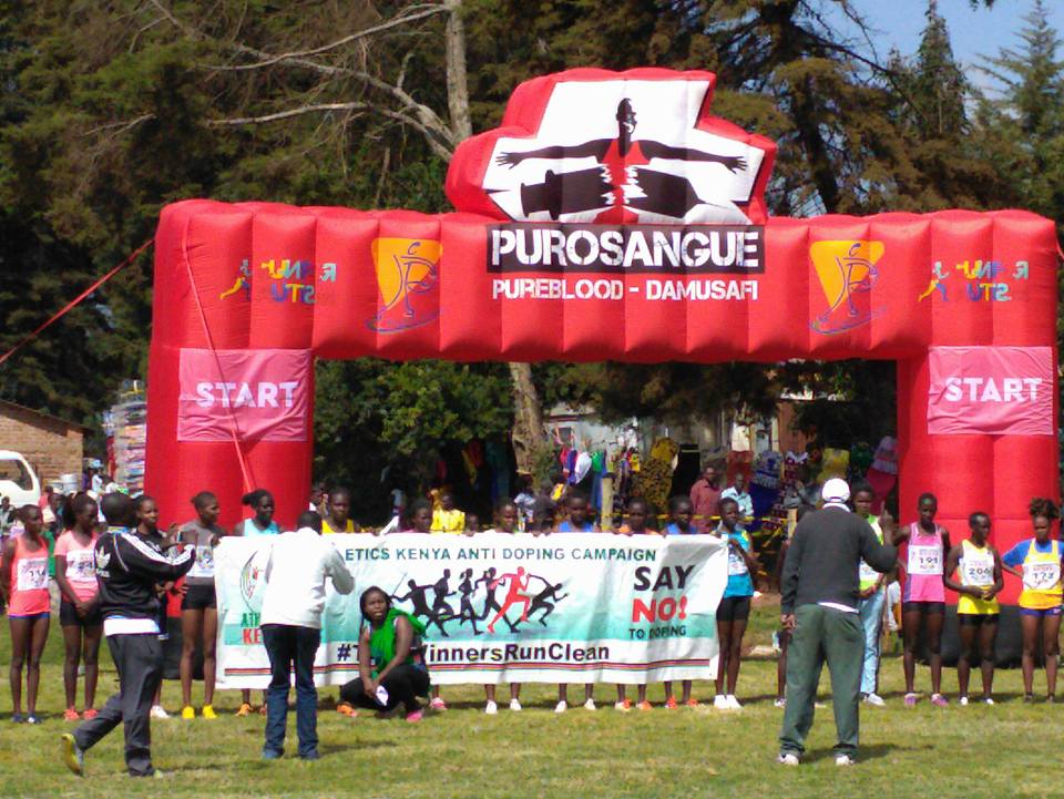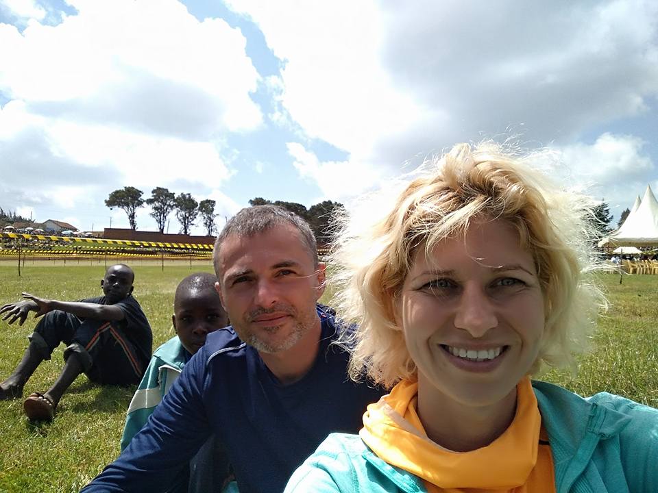 Dziś rano w Iten odbywały się zawody z cyklu cross country. Wstaliśmy o świcie i zrobiliśmy ostatni godzinny trening w Iten. Szybkie śniadanie, motorek i pojechaliśmy na market. W tym roku zawody przełajowe przenieśli na trawiaste, duże boisko obok rynku. W ubiegłym roku biegi były rozgrywane na terenie szkoły St. Patrick. Przyjechaliśmy chwilę przed startem pierwszej grupy. Dziewczyny, juniorki biegły trzy okrążenia, w sumie 6km. Wypatrzyłam kilka, które biegły boso. Zdarzyła się też dziewczynka biegnąca we wciąganych, chińskich tenisówkach i parę w spódniczkach. Na miejscu spotkaliśmy Bożenę i Bogdana i razem oglądaliśmy, komentowaliśmy przebieg rywalizacji. Drugą grupą byli chłopcy, juniorzy. Przynajmniej z założenia, bo patrząc na sylwetki i twarze niektórych z pewnością mieli dużo więcej niż 21 lat. Każda grupa przed startem pozowała do zdjęć z banerem, mówiącym o czystej rywalizacji, bez dopingu.