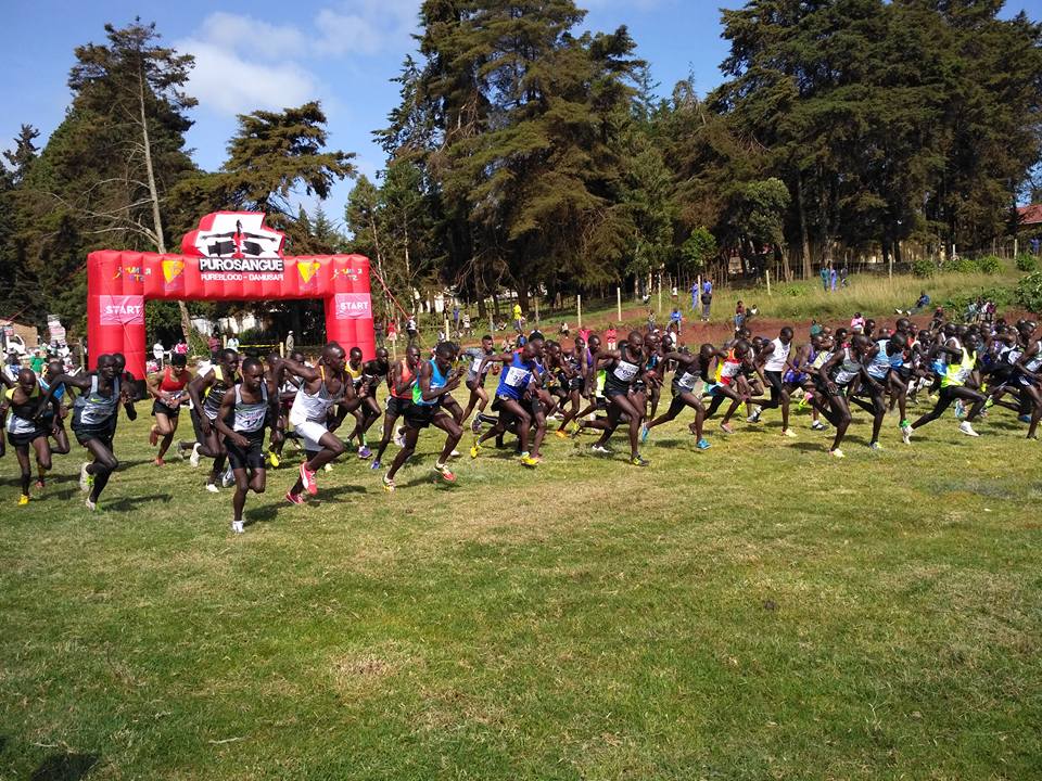 Biegacze we wszystkich grupach startowali szeroką ławą, zanim usłyszeli wystrzał. Było to niebezpieczne zwłaszcza w przypadku seniorów mężczyzn, którzy ruszyli jak dzikie konie, tratując niemal osoby, które na murawie robiły im zdjęcia przed startem. W tym całym zamieszaniu ucierpiał też Asbel Kiprop, który wystartował w biegu seniorów. Na linii startu zawiązywał jeszcze buta, gdy nagle inni ruszyli. Przewrócili go. Kiprop próbował gonić stawkę, widać było na kolejnych nawrotkach jak przesuwa się do przodu. Niestety ostatecznie zszedł z trasy. Meshack widział go potem jak masował sobie kolano, może zbyt mocno ucierpiał na starcie. Szkoda, bo chętnie byśmy zobaczyli jego rywalizację na żywo.