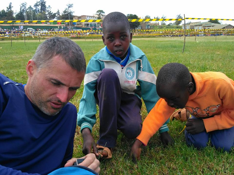 Po zawodach wróciliśmy do hotelu. Po drodze zrobiliśmy jeszcze kilka fotek Altr, które świetnie się tu sprawdziły. Zaczepił nas jakiś chłopak, chciał je przymierzyć. Nazywa się Ben Mutai. Do tej pory biegał na bieżni, od 400-10000m. Na 400m ma 45″ z haczykiem. Teraz przestawia się na dłuższe biegi, chwilowo pobiegł 64′ w półmaratonie. Okazało się, że ma domek, w którym wynajmuje pokoje, zaraz obok Keellu. Pokazał nam je. Całkiem fajne miejsce, z małym ogródkiem. Brakuje tylko łazienki wewnątrz. Ale ma wydzieloną wnekę w domu, może zainwestuje w przyszłości. Chwilowo mieszkają u niego Hiszpanie. Podobno w styczniu ma przyjechać ktoś z Polski, Tomasz.