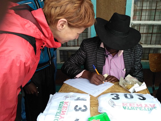 Rano było bardzo zimno i mgliście. Zawodnicy zaczęli się zjeżdżać i rejestrować na bieg albo samodzielnie, albo byli zgłaszani przez swoich trenerów czy też menedżerów. Opłata startowa wynosiła jedynie 100 ksh, czyli 4 zł. Yacool swym bystrym okiem dojrzał pokraczne rysunki biegaczy na bramce startowej. Nie rozumiemy dlaczego nie użyją sylwetek swoich biegaczy, tylko korzystają z europejskich obrazków.