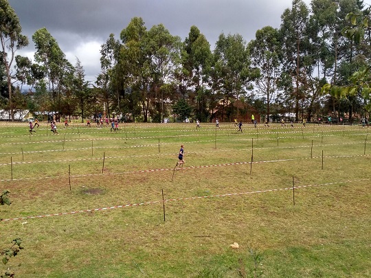 Dziś w Iten odbywały się zawody cross country. Były to jedne z serii biegów wchodzących w skład tutejszego cyklu. O 8 rano pojechaliśmy do St. Patrick’s School, gdzie przygotowano trasę pod biegi. Pętla przebiegała po trawie, miała około 2 km, była bardzo kręta, wyznaczona taśmą. Zawody rozegrano w pięciu kategoriach: juniorzy dziewczęta (dystans 6 km) i chłopcy (8 km) oraz kategorie seniorskie kobiet i mężczyzn na dystansie 10 km. Na koniec pobiegły damsko-męskie czteroosobowe sztafety, każda zmiana robiła jedną pętlę.