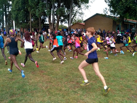 Na terenie szkoły spotkaliśmy naszego znajomego Daniela, który rok temu wydał ebooka o kenijskich biegaczach. Tym razem pomagał przy organizacji zawodów. Zapytałam go czy też mogłabym wystartować. Odparł, że tak. Pod wpływem chwili postanowiłam się zapisać. Ustawiłam się grzecznie w kolejce. Dokonujący zapisów pan podniósł głowę dopiero jak usłyszał moje nazwisko. Zapisał je po swojemu i dał mi numer startowy. Na rozgrzewce zagadnęła mnie grupka dziewczyn. Okazało się, że znają Polskę, bo w tym roku startowały w Bydgoszczy na Mistrzostwach Juniorów. Bardzo się ucieszyłam, zwłaszcza że to moje rodzinne miasto.