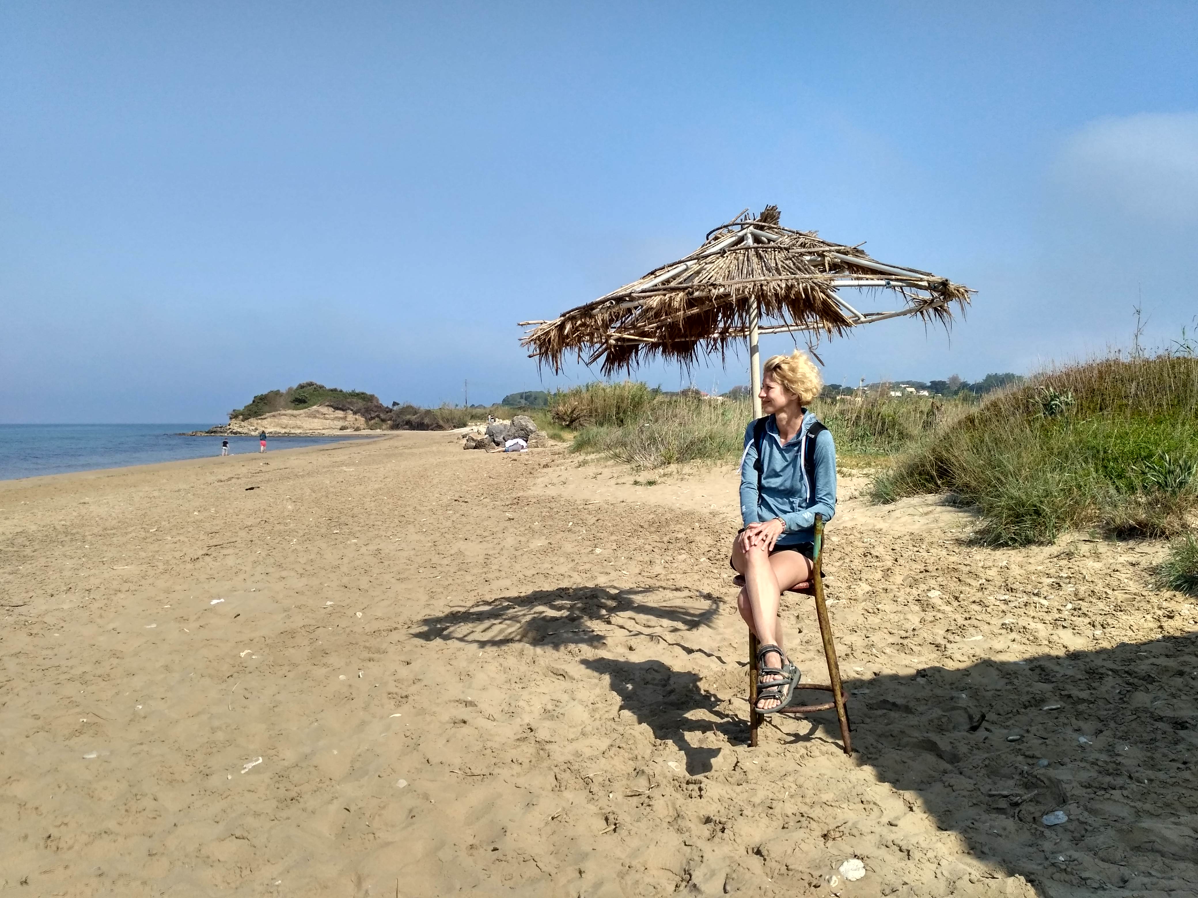 Na dziś zaplanowałam wyjazd na południe wyspy, nad Jezioro Korisson. Umówiliśmy się, że wstaniemy wcześniej, tak by o 9 wyjechać. Dzięki temu mieliśmy poślizg tylko półgodzinny. Z Agios Gordios prowadziła tam całkiem niezła droga, choć jak zawsze pełna ostrych podjazdow, zjazdow i zakrętów. Po około 30 minutach byliśmy na miejscu. O Jeziorze Korisson czytałam, że jest obszarem objętym programem Natura 2000. Podobno jest to siedlisko wielu gatunków ptaków, żyją tam żółwie, a w czasie migracji można zobaczyć flamingi. Niestety jedyne co udało mi się dostrzec to była mewa i jakiś wróbel. Niemniej jednak miejsce warte odwiedzenia.